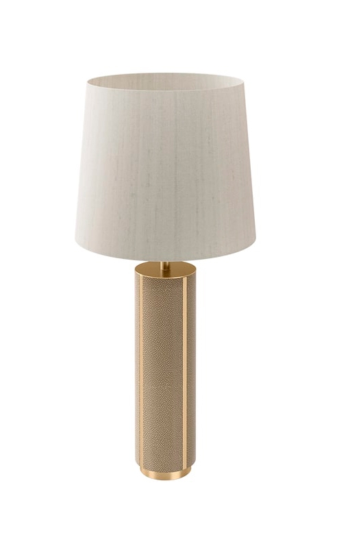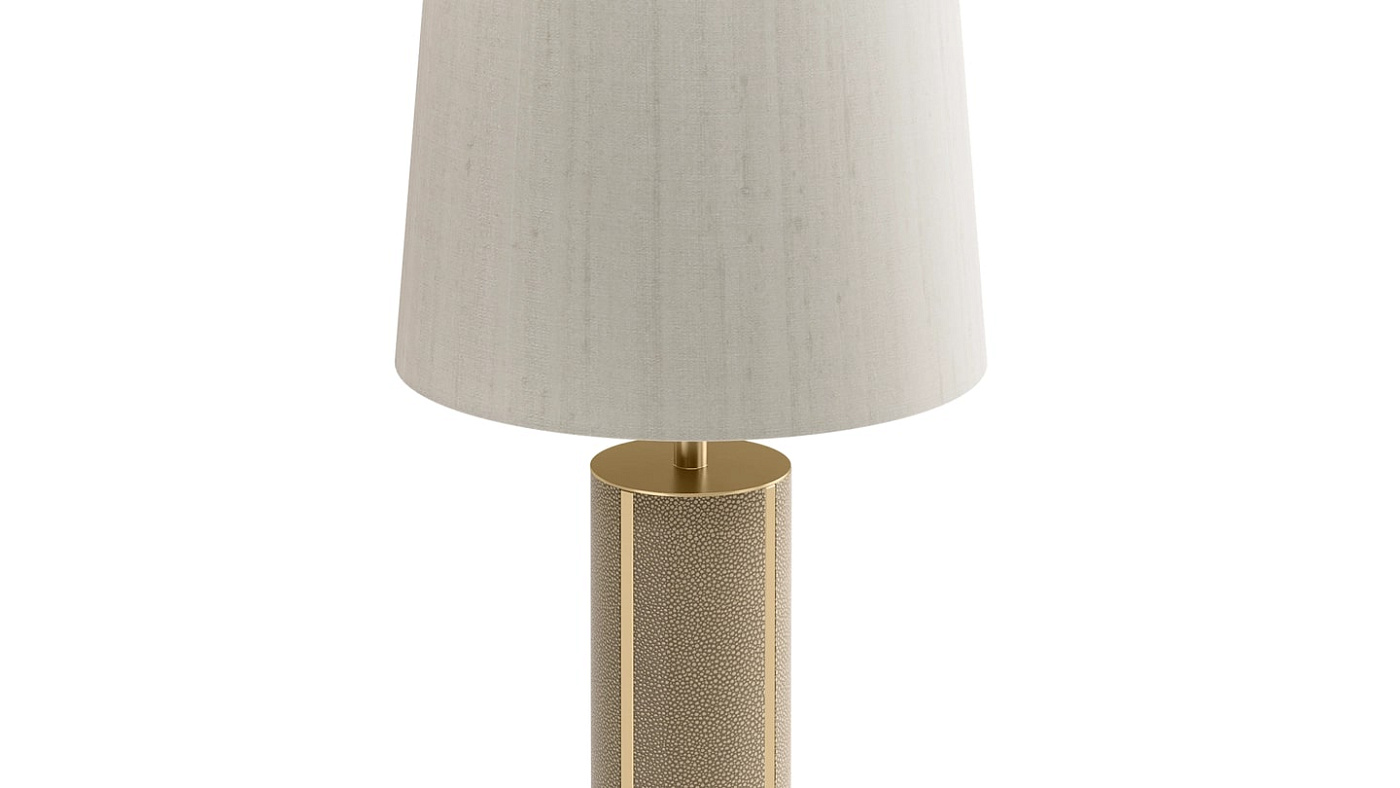 Настольная лампа desireable CLOSE обладает атмосферой уверенности в себе благодаря своим обильным пропорциям и вневременному внешнему виду. Ножка, выполненная из матовой латуни и текстурированной кожи, гармонично сочетается с роскошным двойным шелковым оттенком. Для гармоничного внешнего вида этот дизайн также доступен в виде торшера.
