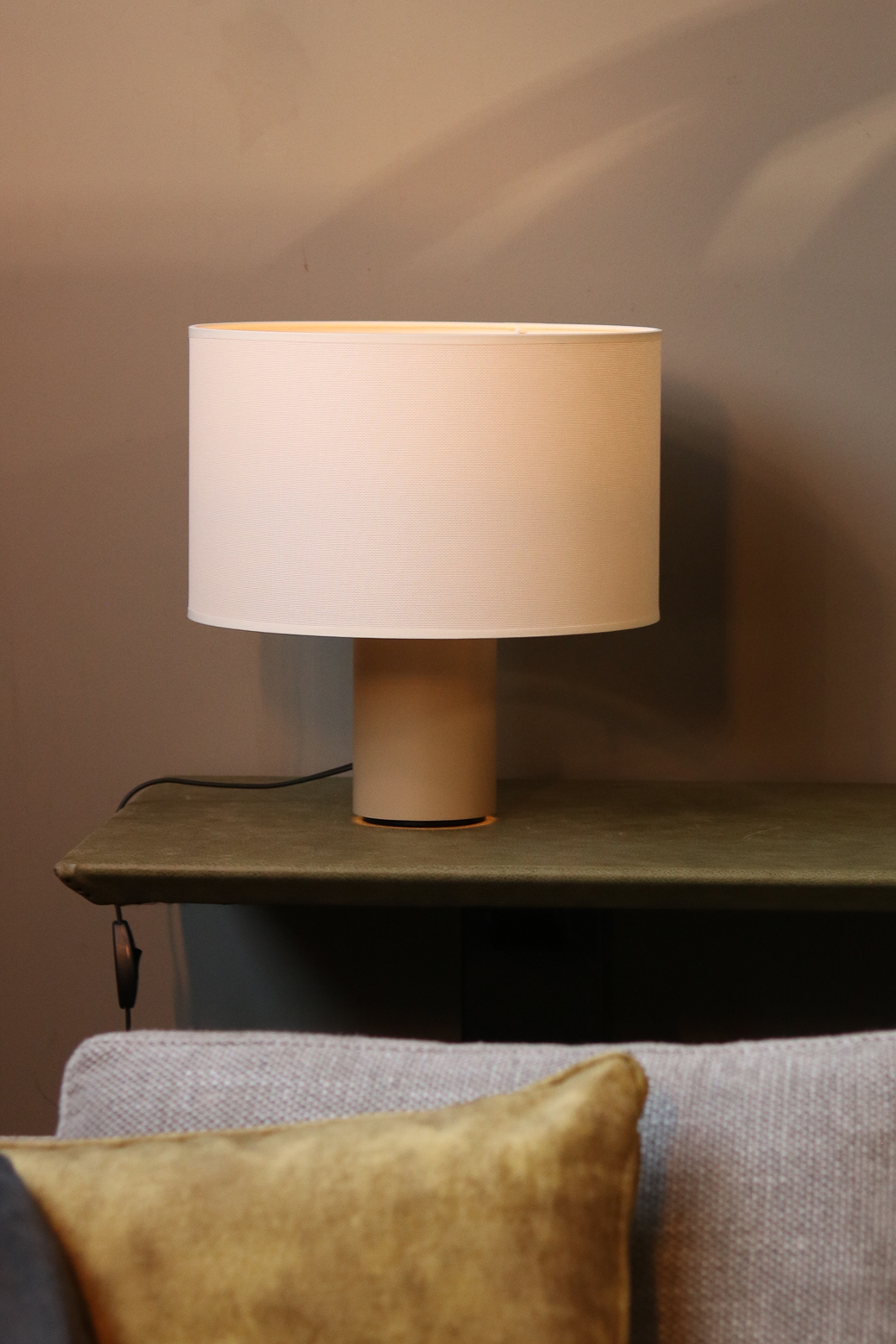 Минималистичный металлический настольный светильник с цилиндрической головкой.