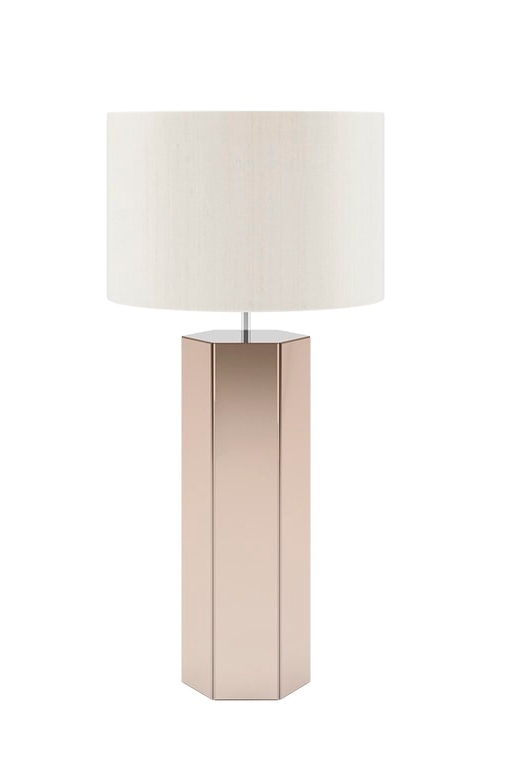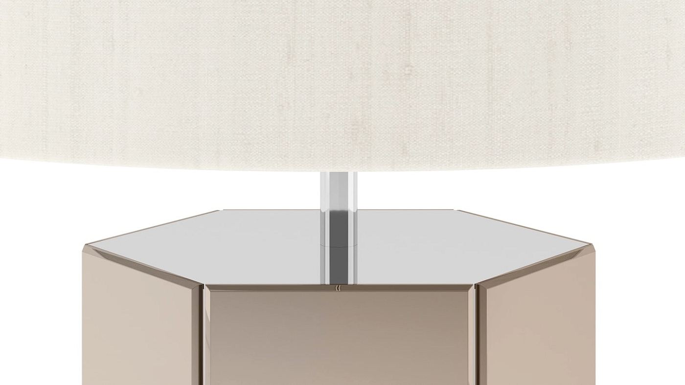 В этом нет никаких сомнений, настольная лампа DUNDEE II была создана для того, чтобы привлекать внимание. Широкая шестиугольная ножка увенчана барабанным абажуром из двойного шелка и отделана секциями бронзового зеркала со скошенными краями, которые отражают доли естественного или искусственного света.