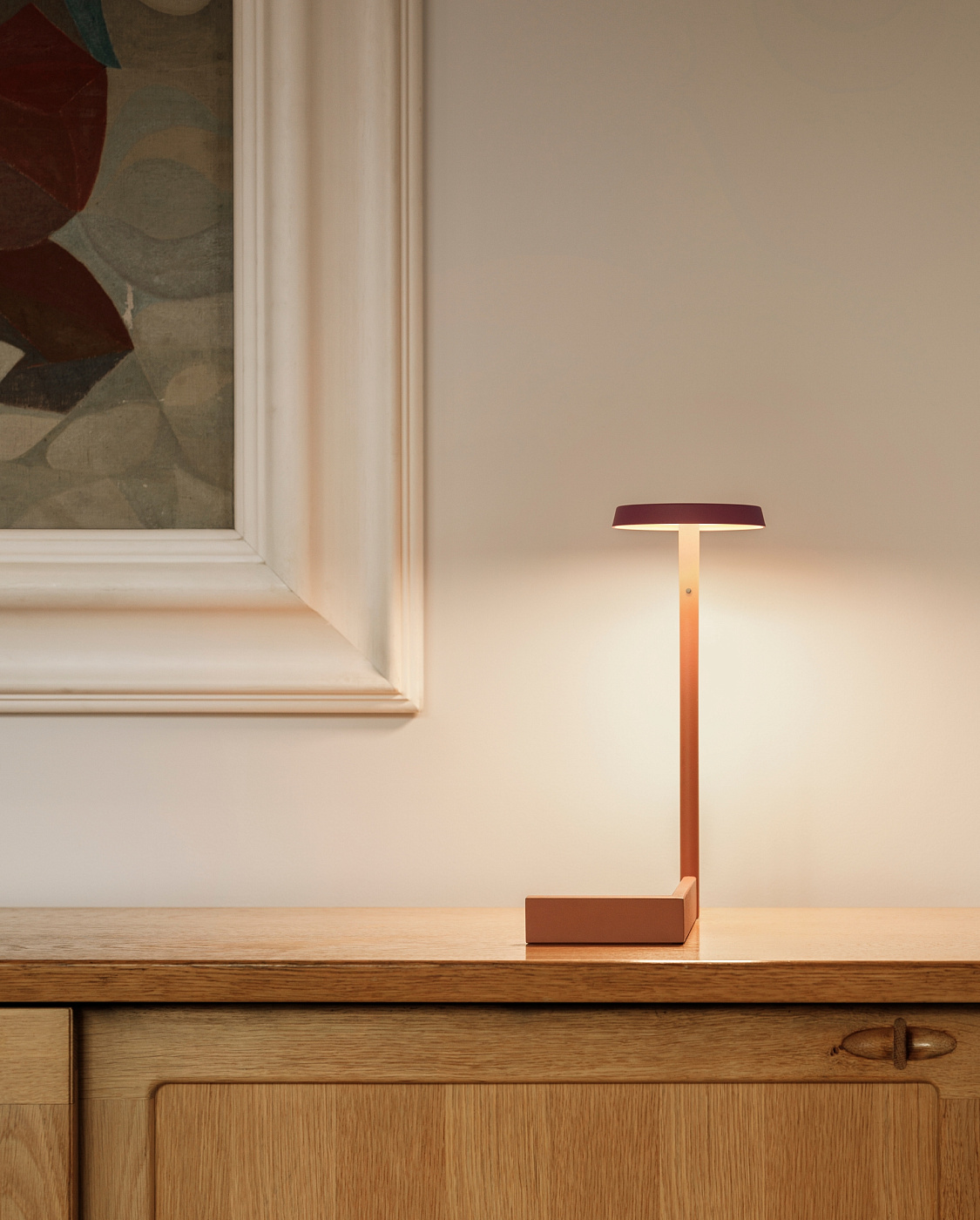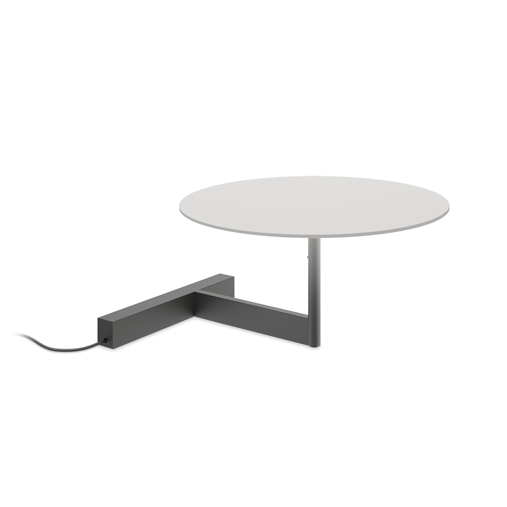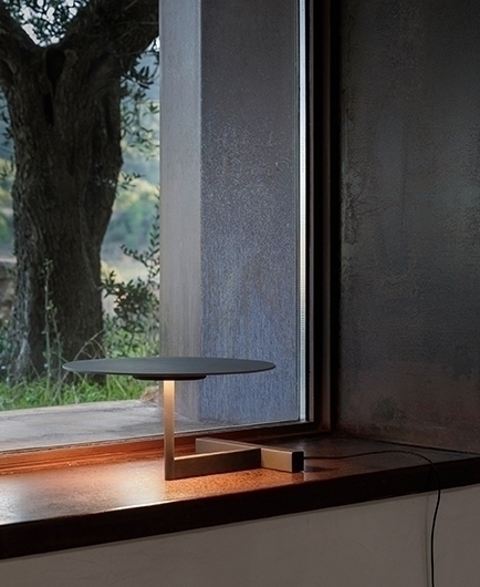 настольная плоская лампа доступен с компакт-диском или тарелкой в виде полки, которая служит мебелью, а ее миниатюрные пропорции придают ей интимную человеческую чувственность. Свет отражается вниз, создавая мягкое свечение на поверхности, на которой он лежит. Изучение геометрии, его четкие линии и плавные изгибы излучают скульптурную элегантность.