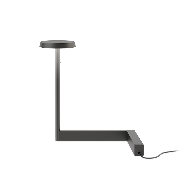 настольная плоская лампа доступен с компакт-диском или тарелкой в виде полки, которая служит мебелью, а ее миниатюрные пропорции придают ей интимную человеческую чувственность. Свет отражается вниз, создавая мягкое свечение на поверхности, на которой он лежит. Изучение геометрии, его четкие линии и плавные изгибы излучают скульптурную элегантность.