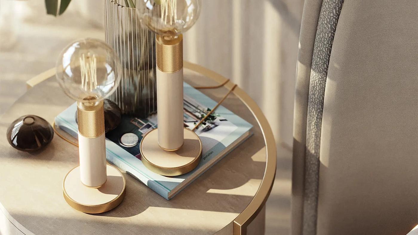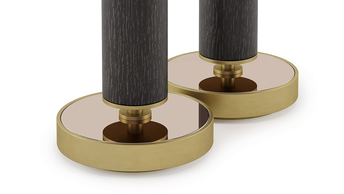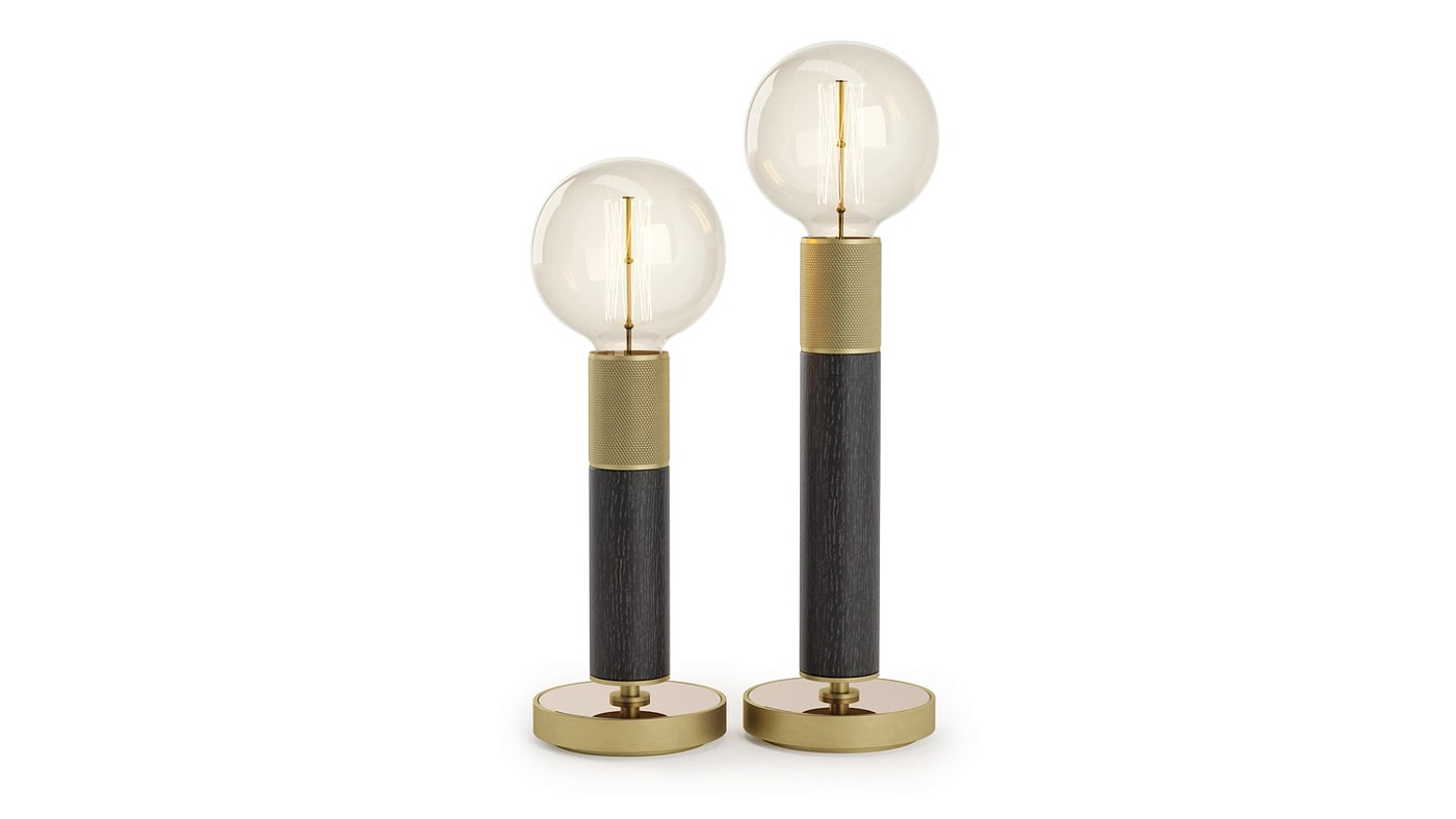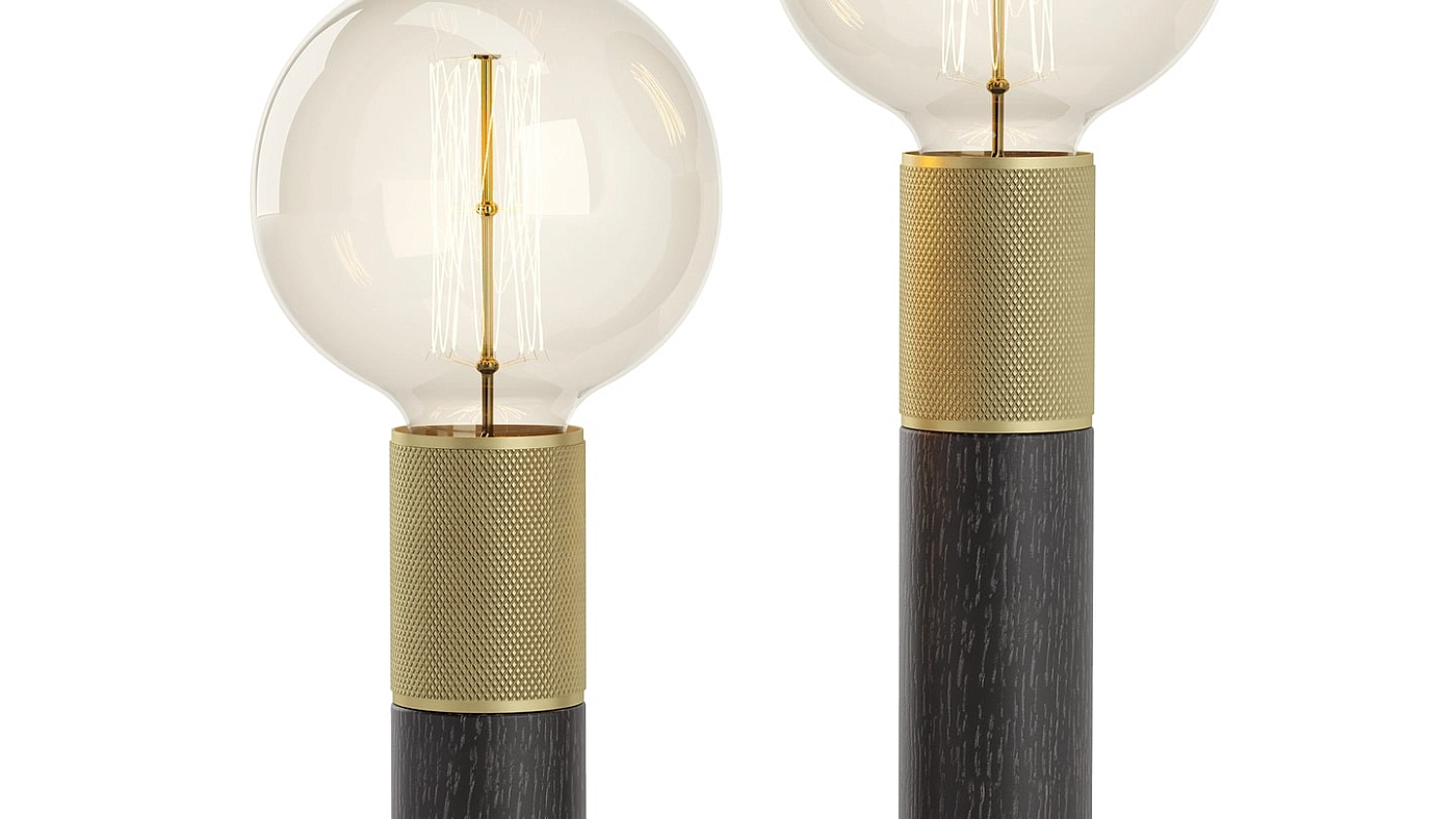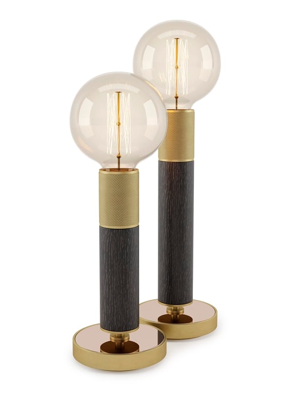 Модель ASPEN, доступная в двух различных размерах, без абажуров возвращает концепцию настольной лампы к истокам. В основе дизайна, представляющего собой лампу накаливания, лежит рифленая и матовая латунь, деревянный шпон и базовая инкрустация из бронзового зеркала.