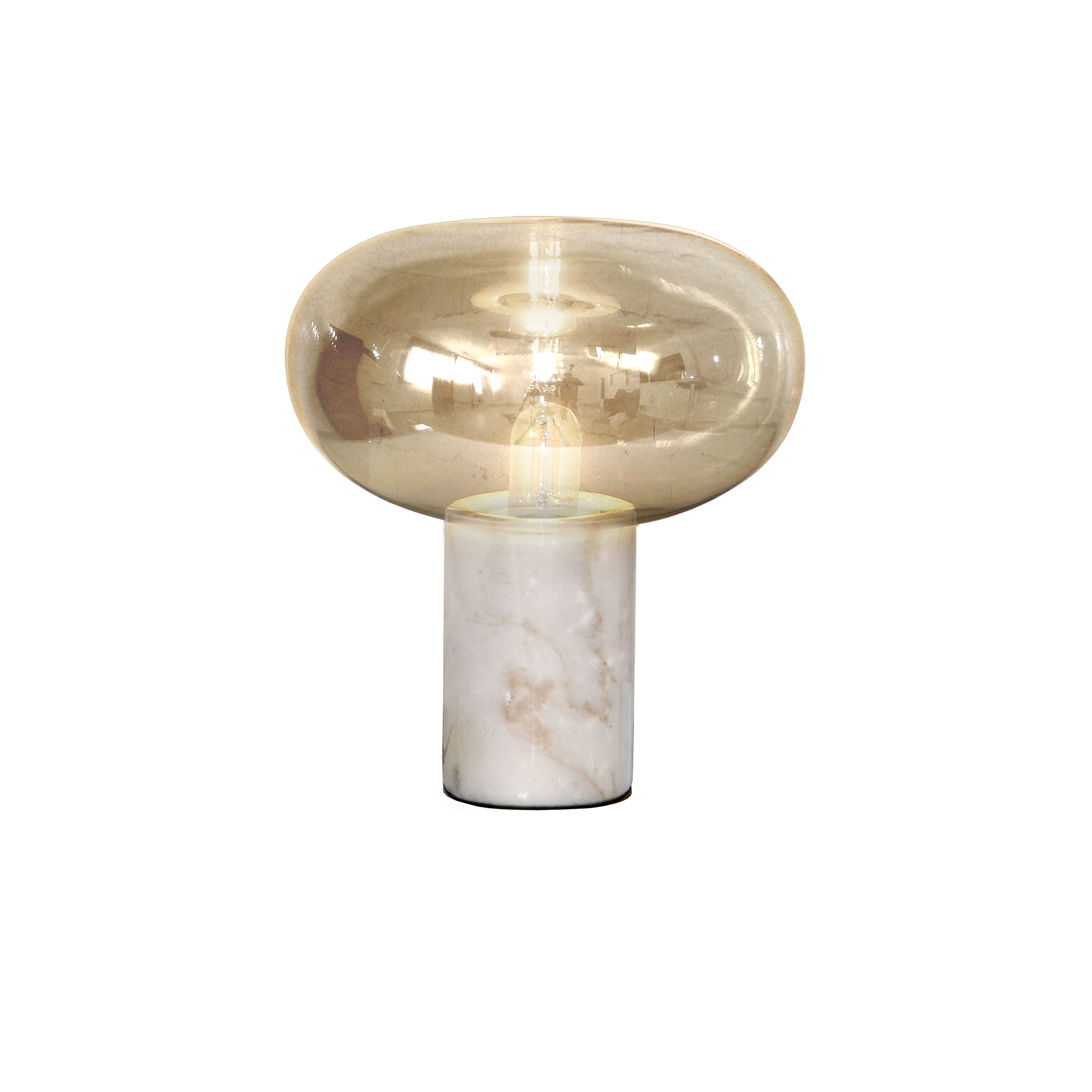 Настольная лампа 1 лампочка. Изготовлен из белого мрамора. Абажур из дутого стекла янтарного цвета. Этот товар включает в себя 1 светодиод E27 8 Вт. DIMABLE.