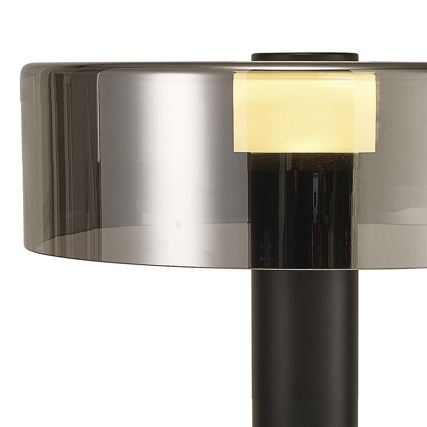 Серия светильников Gin собрала в своем образе все черты сдержанного мужского характера. Самодостаточный по формам, в основе которых лежат цилиндрические плафон, основание и ножка, он идеально вписывается в современные интерьерные пространства. Всегда дымчатая загадочность стеклянного абажура мягко рассеивает свет вокруг себя. Строгим разнообразием в дизайне являются лишь сближенные тонально цвета металлических элементов: полуматовый черный, благородный медный и платиновый. Рапорт из двух разных по размеру настольных ламп и подвеса идеален для гостиничных комплексов, спален, кабинетов и офисов.