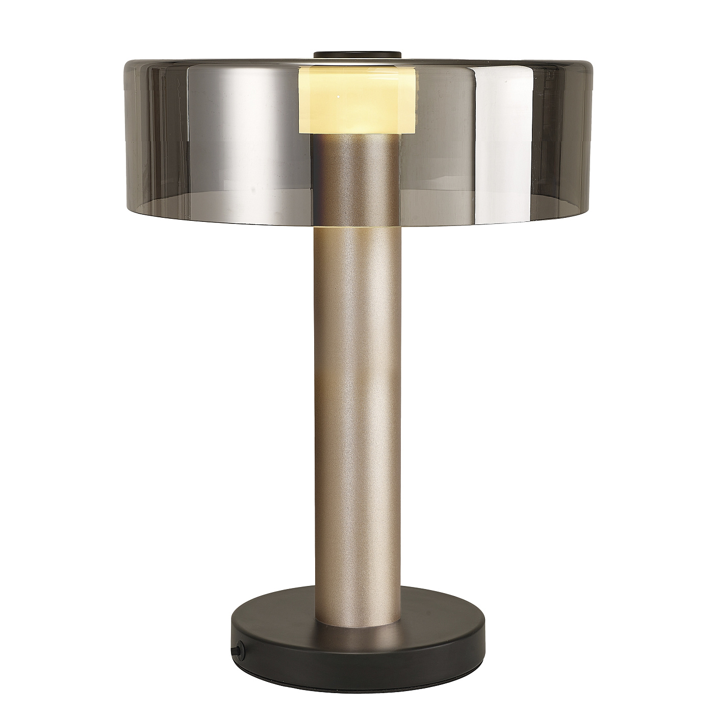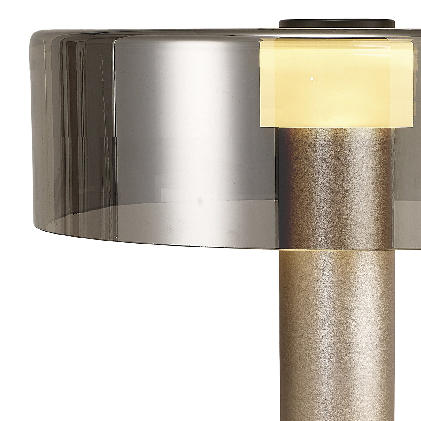 Серия светильников Gin собрала в своем образе все черты сдержанного мужского характера. Самодостаточный по формам, в основе которых лежат цилиндрические плафон, основание и ножка, он идеально вписывается в современные интерьерные пространства. Всегда дымчатая загадочность стеклянного абажура мягко рассеивает свет вокруг себя. Строгим разнообразием в дизайне являются лишь сближенные тонально цвета металлических элементов: полуматовый черный, благородный медный и платиновый. Рапорт из двух разных по размеру настольных ламп и подвеса идеален для гостиничных комплексов, спален, кабинетов и офисов.