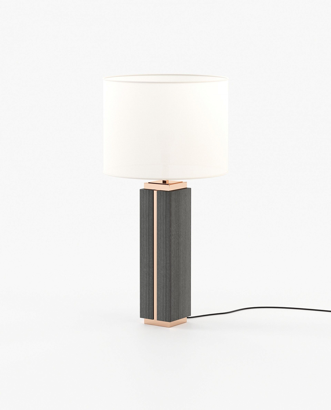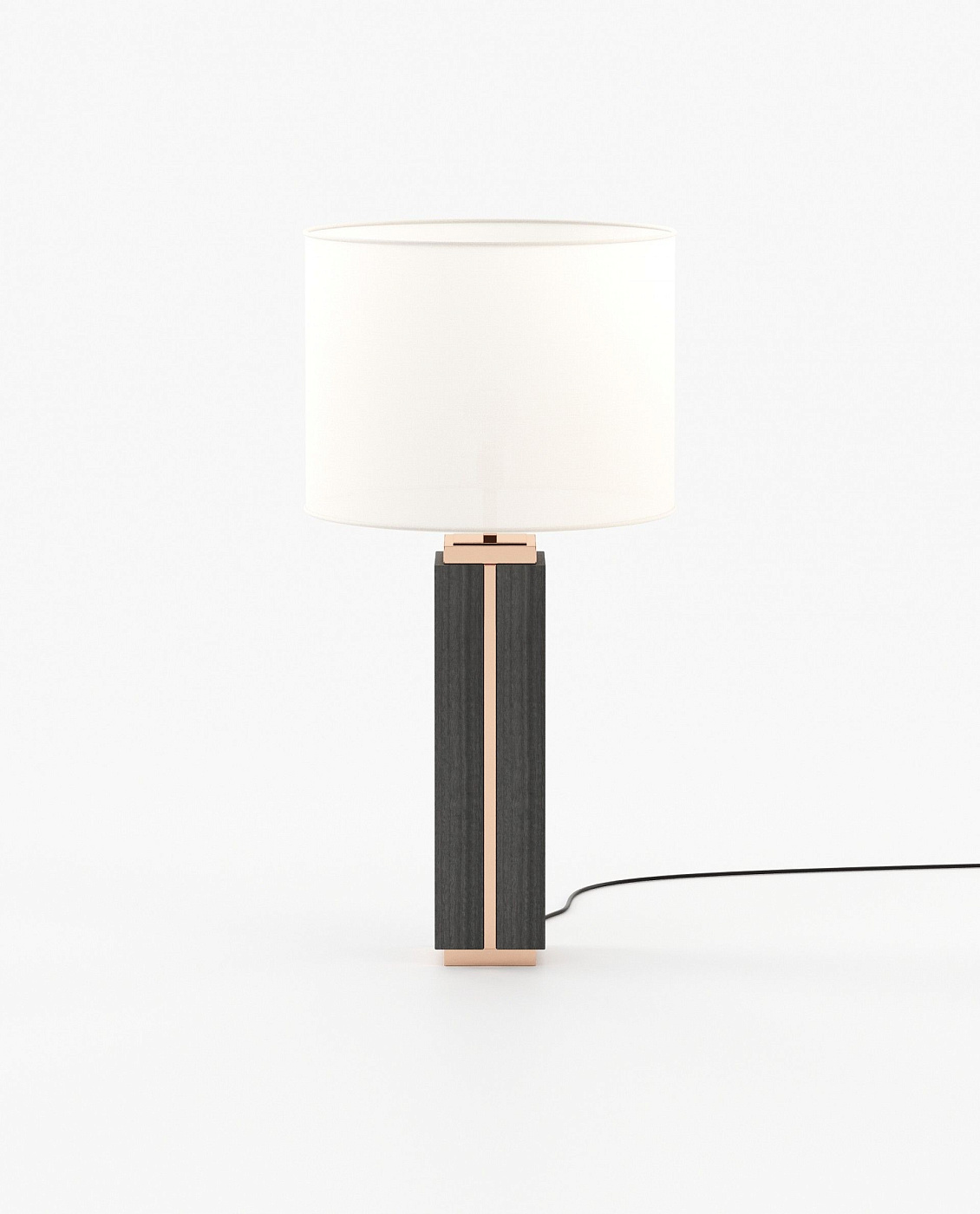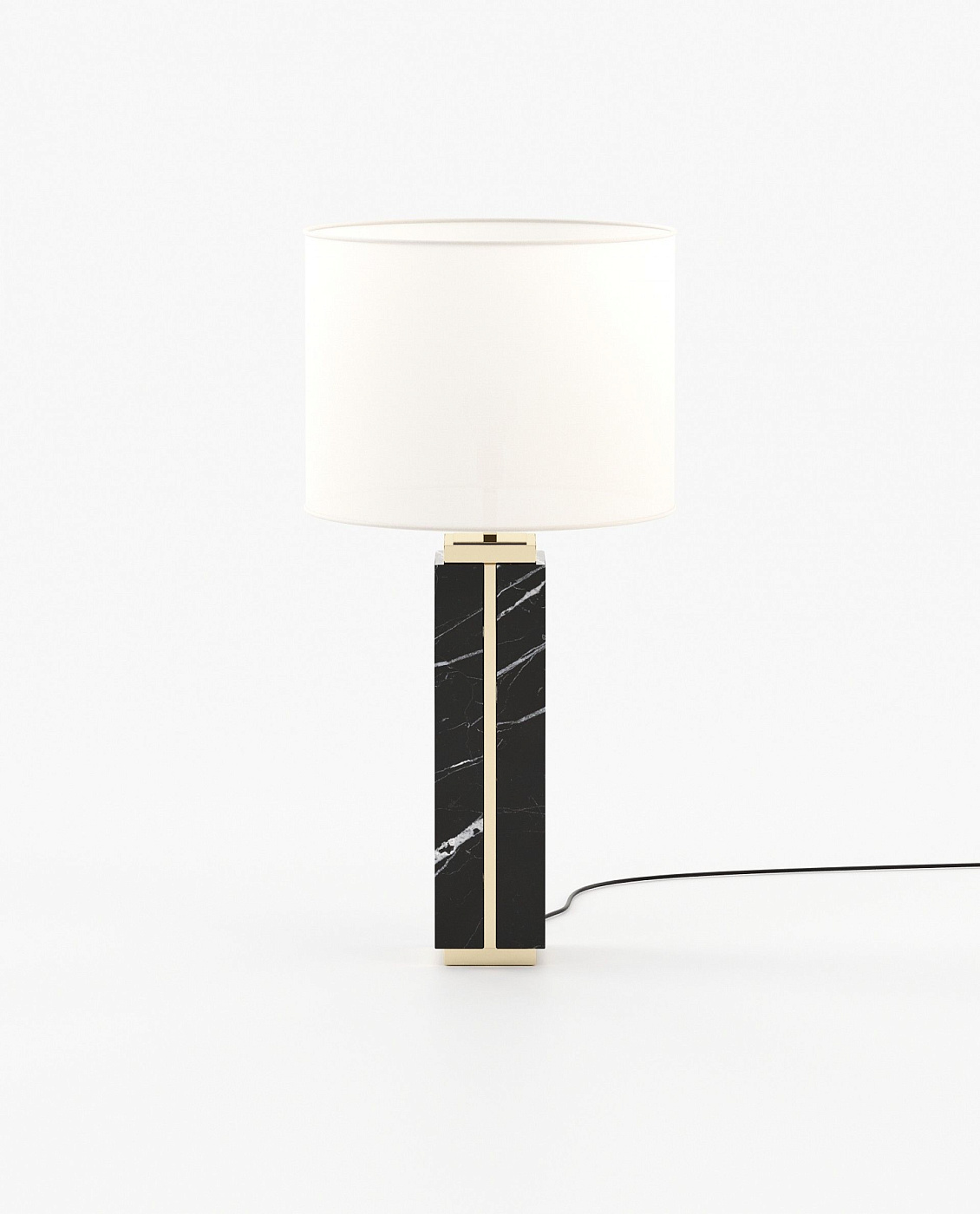 Высокая настольная лампа из мрамора или дерева, с металлическими деталями в основании и верхней части с элегантной линией, которая пересекает мрамор и соединяет оба конца.