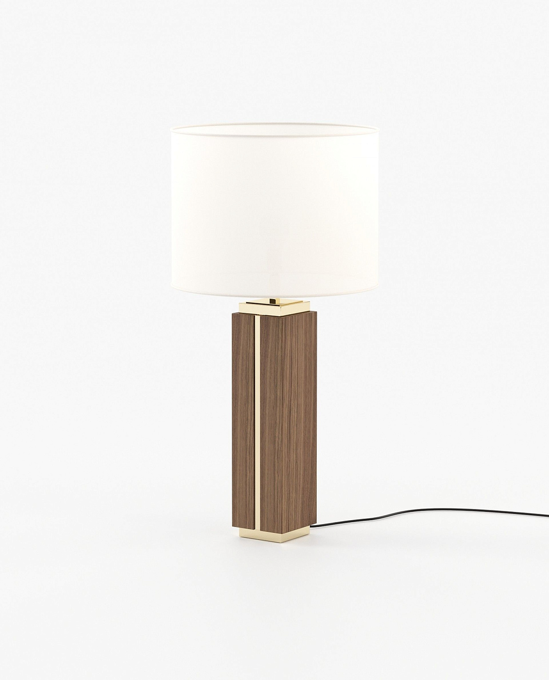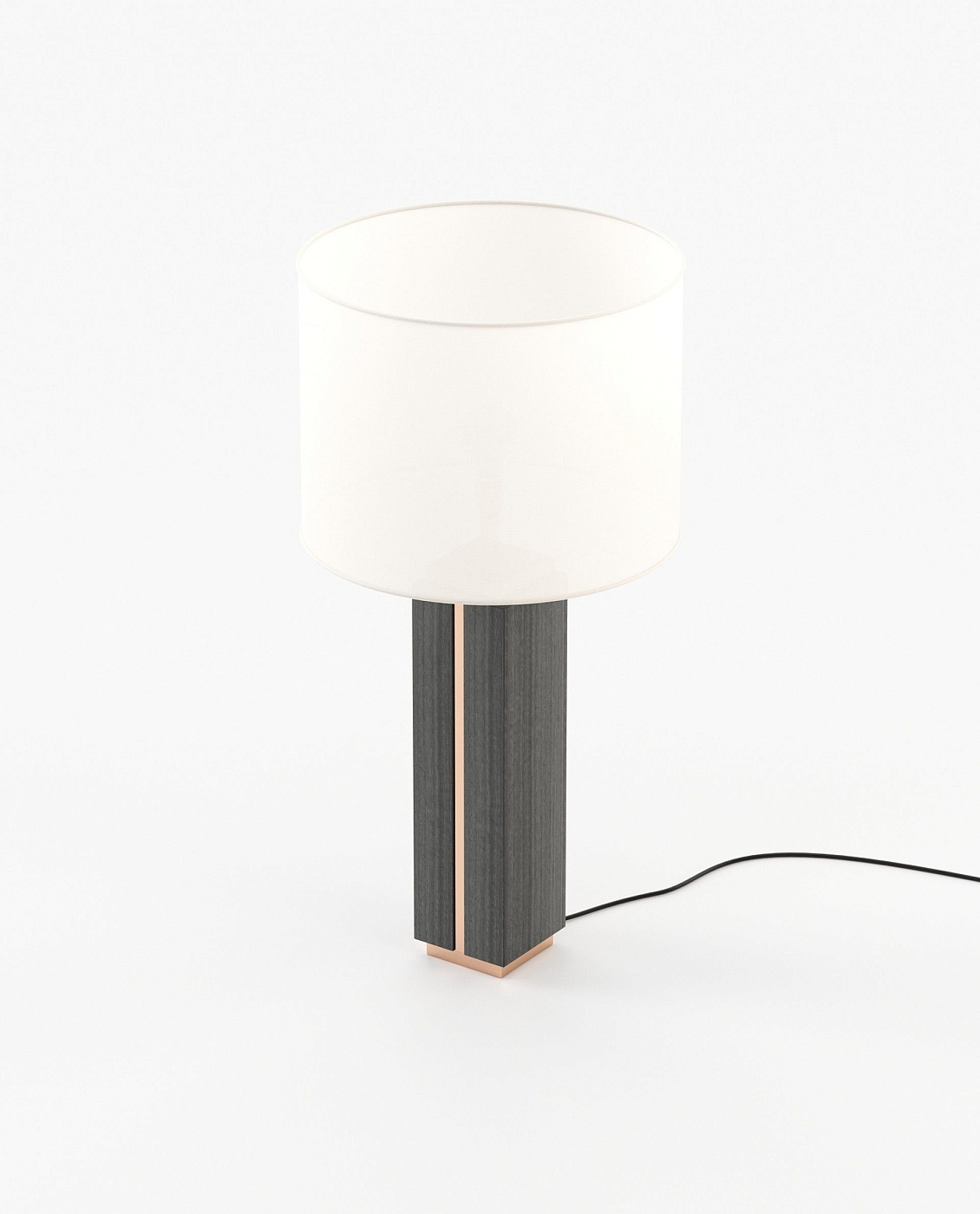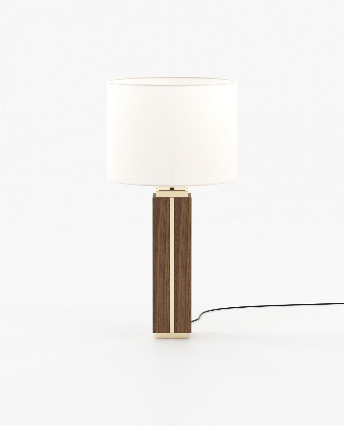Высокая настольная лампа из мрамора или дерева, с металлическими деталями в основании и верхней части с элегантной линией, которая пересекает мрамор и соединяет оба конца.