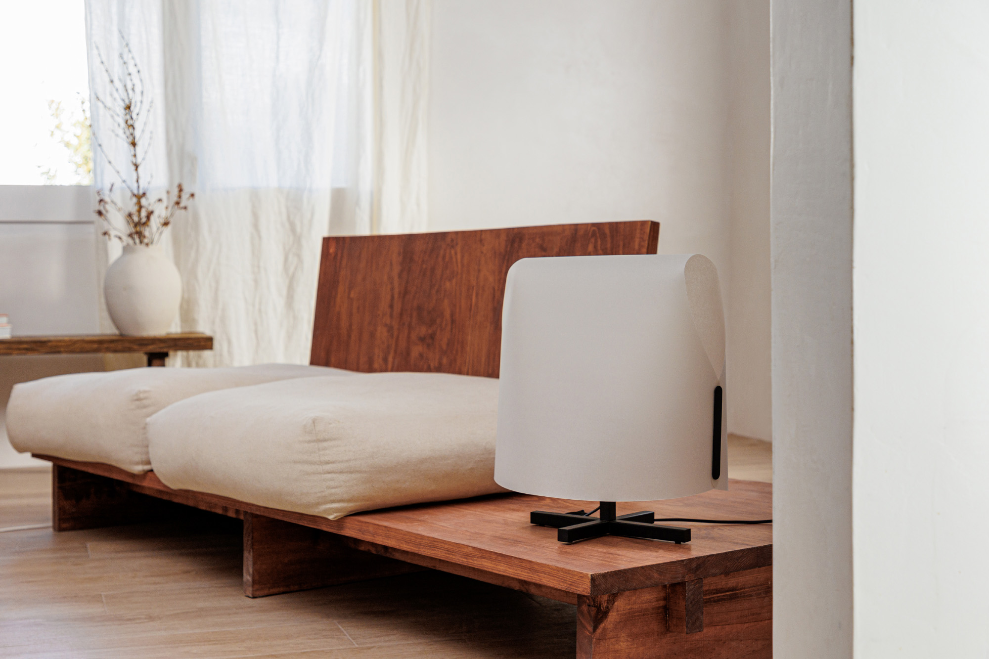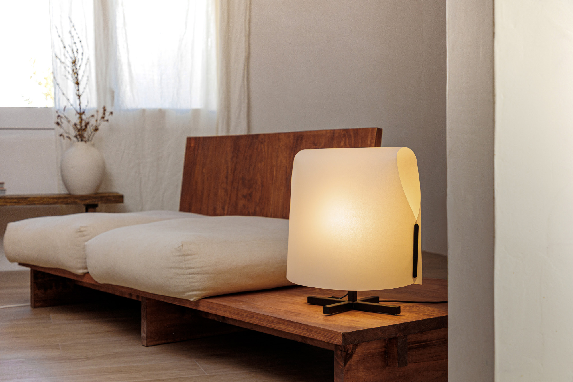 LUANG M — настольная лампа местного производства, разработанная Faro Lab Семья LUANG вдохновлена искусством и ремеслом изделий из папируса и натуральных продуктов в Юго-Восточной Азии; в том, как они видимые объемные объекты большой поэтической и формальной сложности из плоских элеме нтов. Минималистичная структура контрастирует с ее величественным и организованным внешним видом. Абажур этой модели бежевого цвета, создание очень естественно и уютный свет.