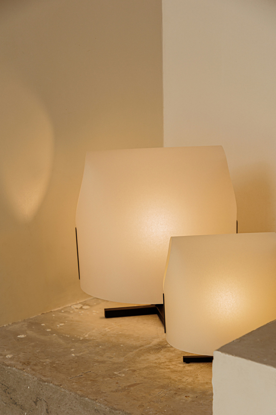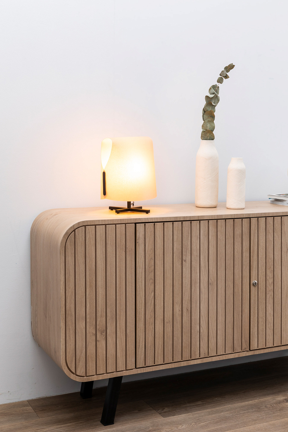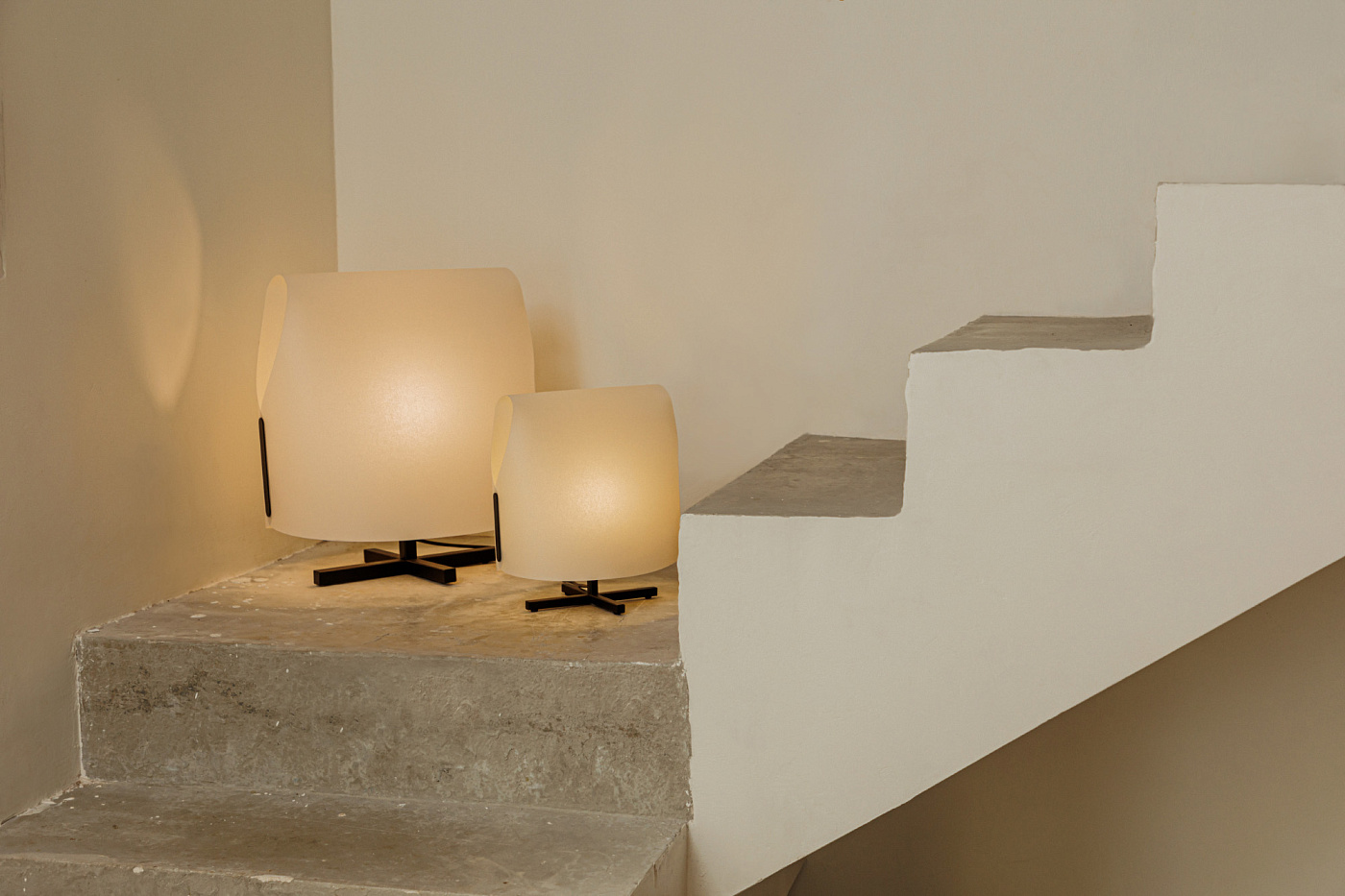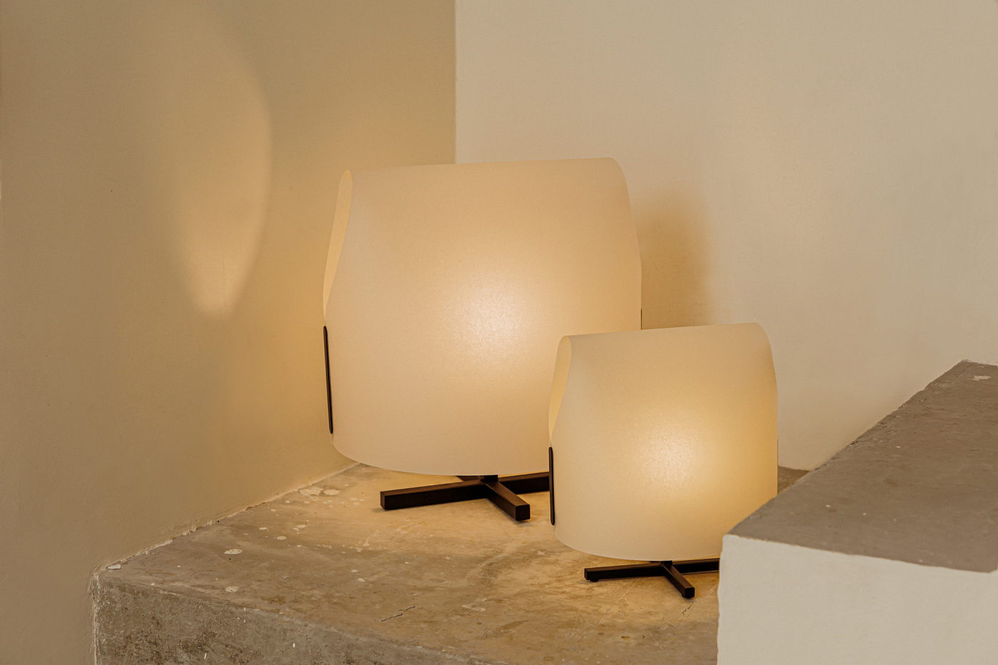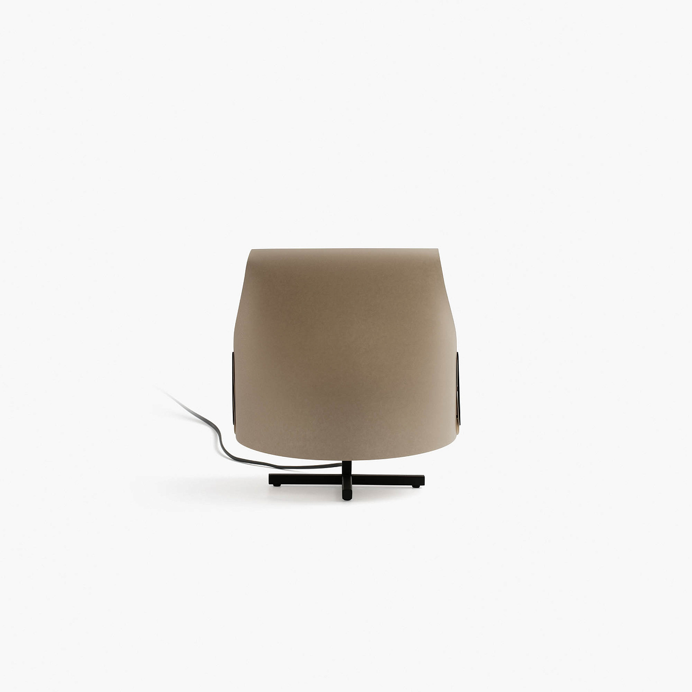 LUANG S — настольная лампа местного производства, разработанная Faro Lab. Семья Луанг вдохновляется искусством и предметами ручной работы, сделанными из папируса и натуральных волокон в Юго-Восточной Азии, а также тем, как они создают невероятно формальные поэтические и сложные объемные объекты из плоских элементов. Он имеет минималистскую структуру, которая резко контрастирует со свободным и органичным внешним видом его тени, которая, не имея структуры и материализуясь исключительно в папирусе, полностью светится. Оттенок этой модели — верблюжий, обеспечивающий очень естественный уютный свет.