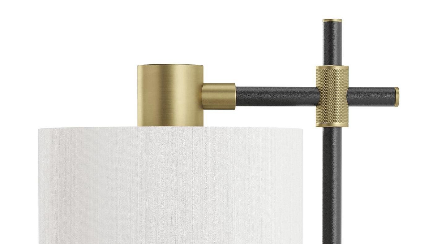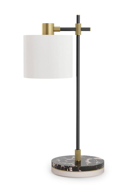 Красивая мадридская настольная лампа с оттенками модернизма середины века излучает стиль. Сочетая в себе смесь атмосферных материалов, структура дизайна включает в себя камень, окрашенное железо, лакированное дерево и латунь, и все это отделано двойным шелковым оттенком.