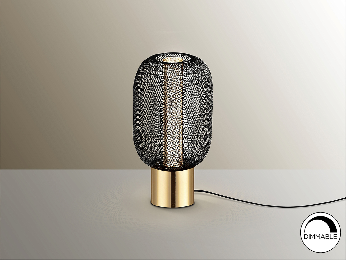 Настольная лампа из 1 лампы. Настольная лампа из металла с отделкой яркого золота и черного цвета. Двойной оттенок с прозрачным акриловым внутренним цилиндром с пузырьками и внешним овалом из черной металлической сетки. Светодиод 5 Вт, 450 лм, 3000 К. DIMMABLE.