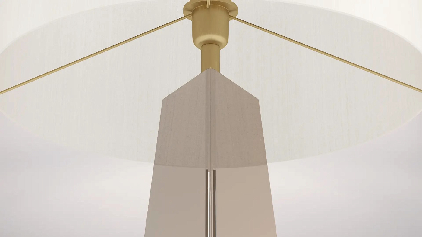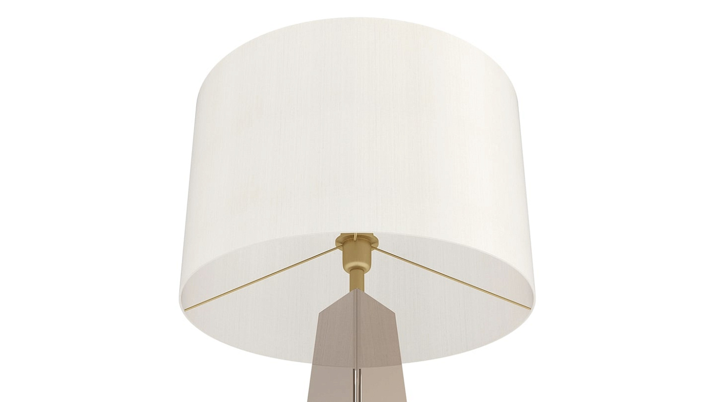 Модная настольная лампа OLIVA с расклешенной конструкцией отделана бронзовым зеркалом - материалом, который мягко отражает окружающую обстановку и блестит при освещении. Завершает дизайн барабанный абажур, сотканный из двойного шелка. Также доступен в качестве торшера.