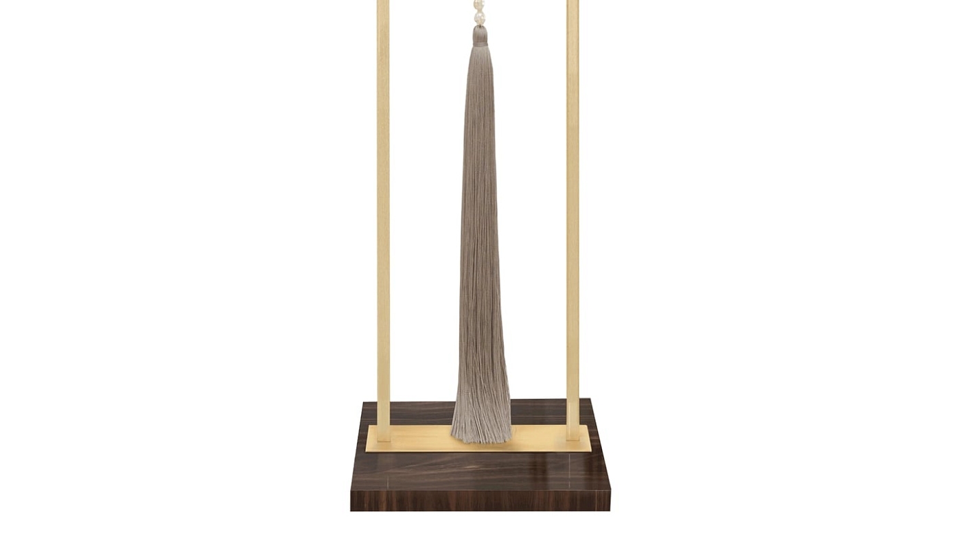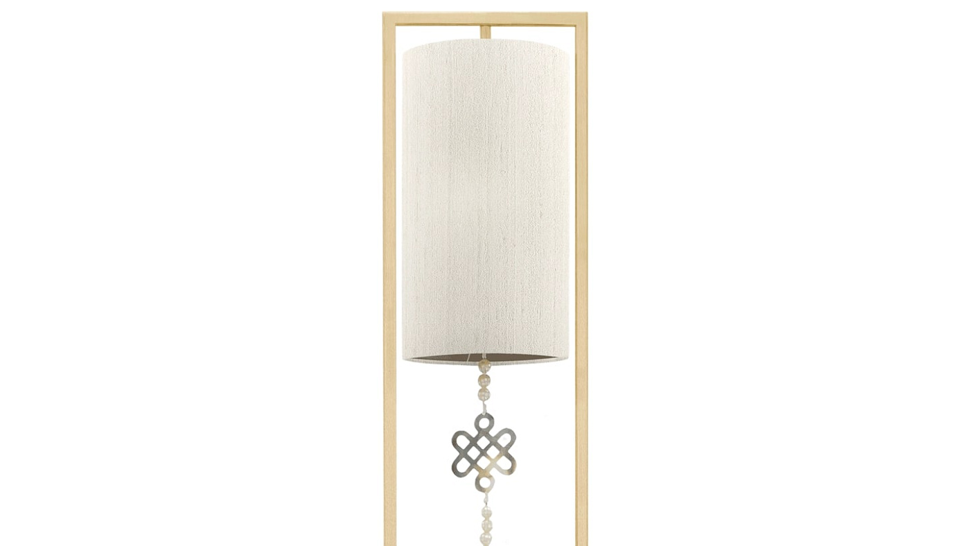 Изящная лампа SAGRES высотой 90 сантиметров добавит высоты и элегантности вашему столу или поверхности. Его основание из деревянного шпона закреплено на тонкой раме из матовой латуни, к которой подвешен двойной шелковый абажур и декоративная подвеска.
