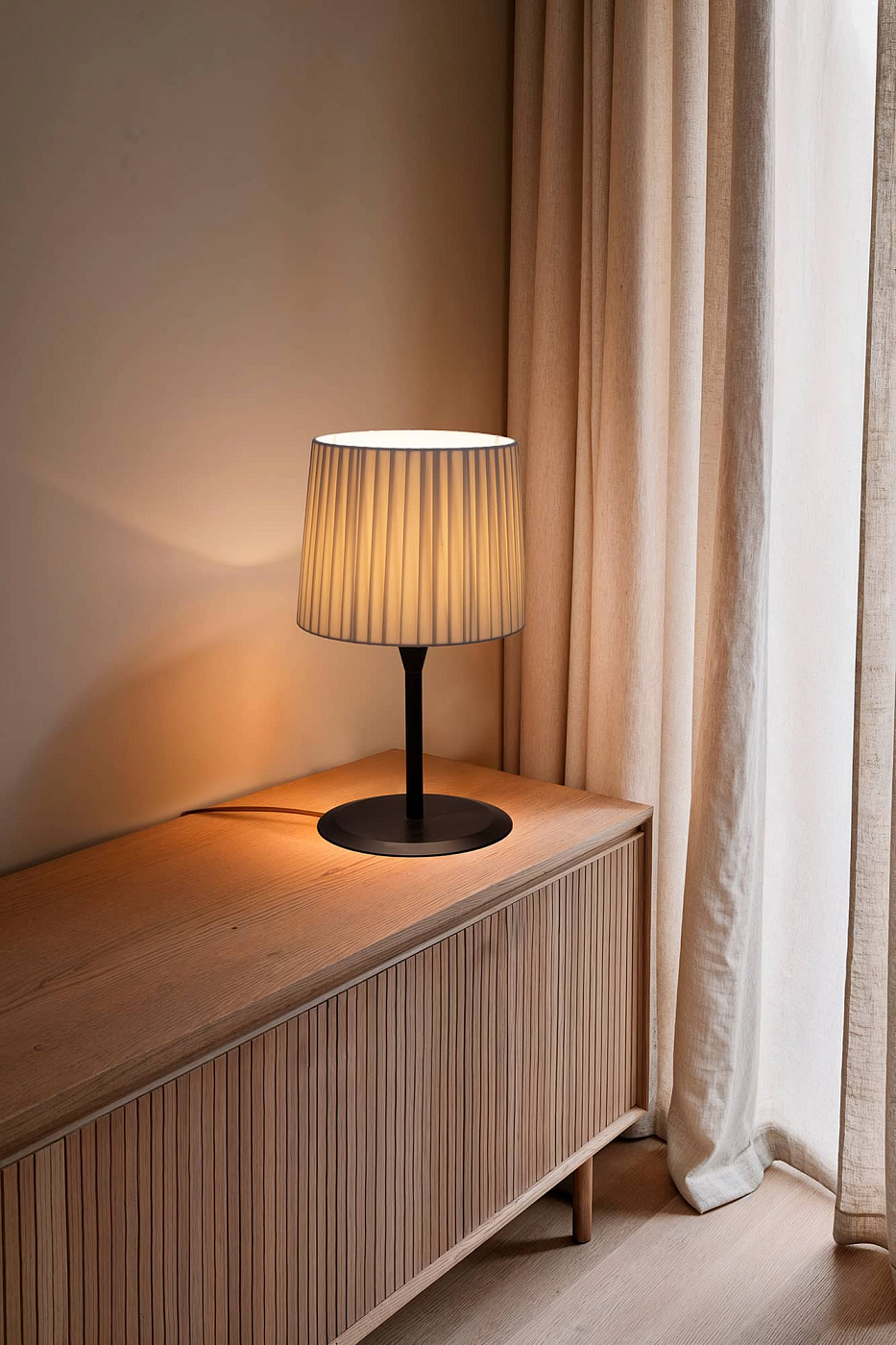 SAMBA - это коллекция для внутреннего освещения, разработанная Faro Lab. Эта черная настольная лампа с бежевым плафоном идеально подходит для спален и гостиных. Хороший вариант для отелей.