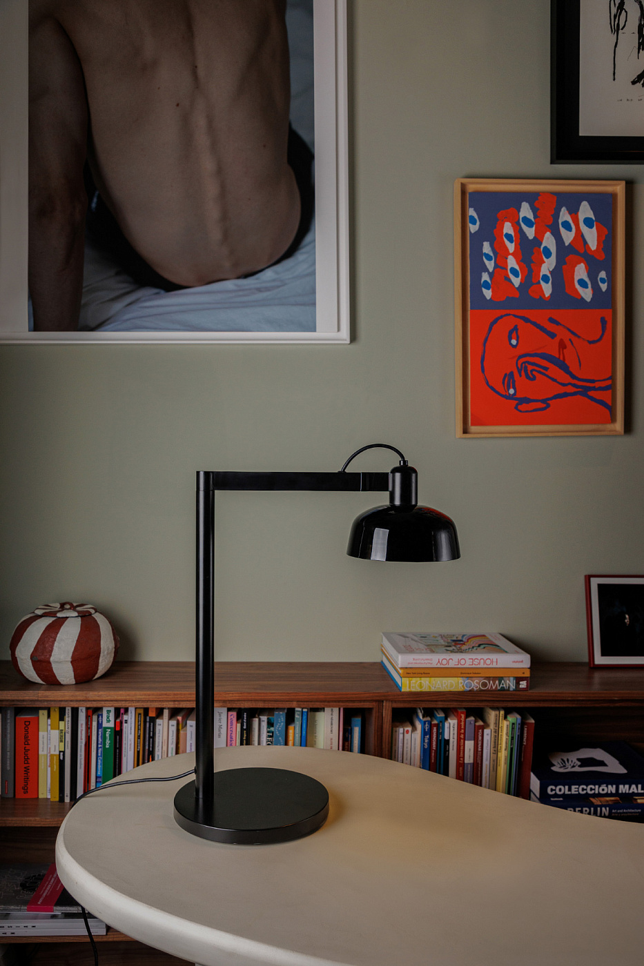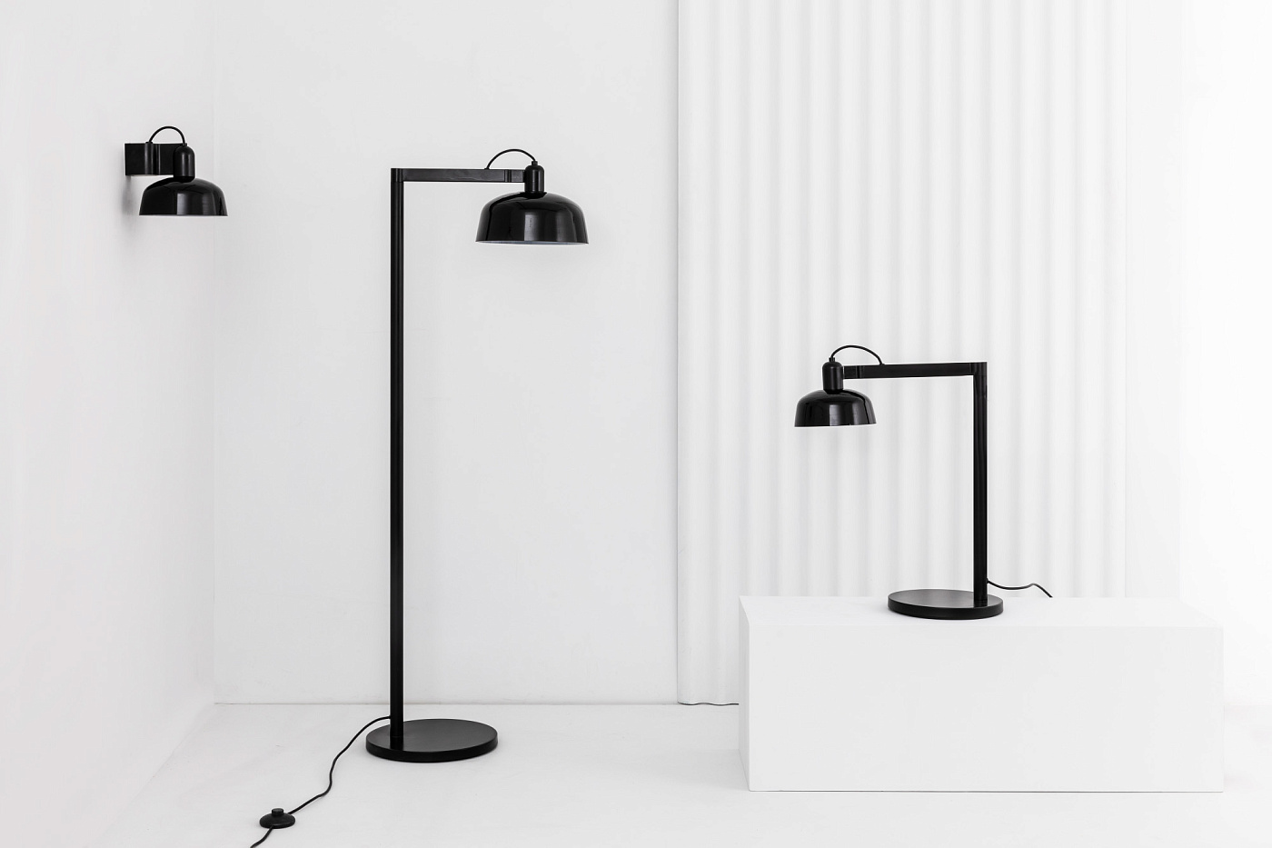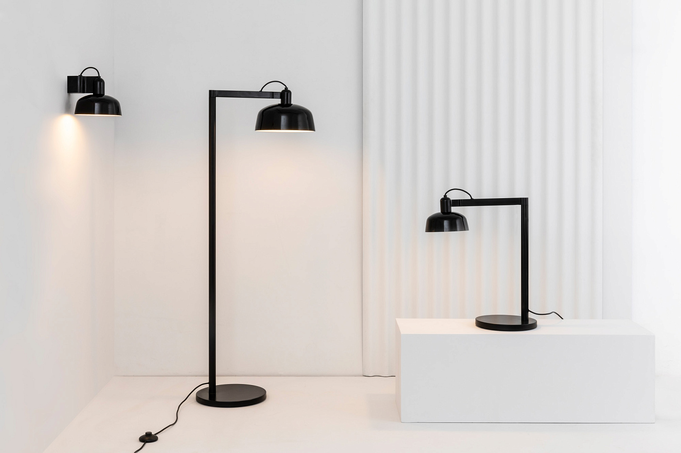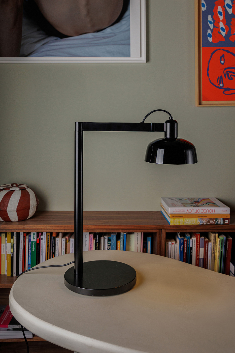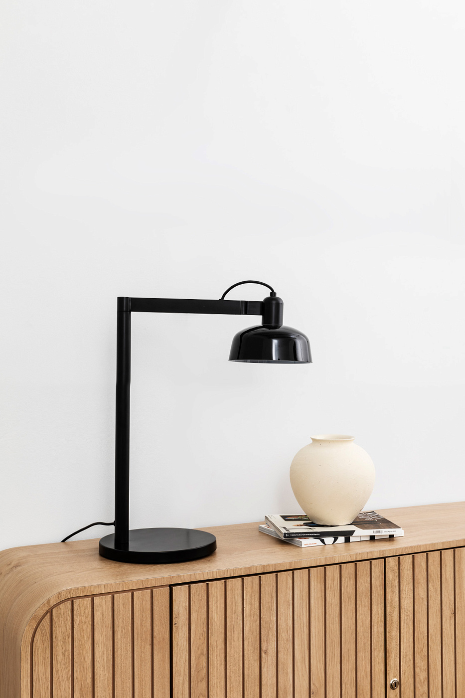 TATAWIN — это семейство светильников, разработанное Адольфо Абейоном. Форма тени напоминает верхнюю часть характерных домов Татауина, города на юго-востоке Туниса. Эта настольная лампа с поворотным кронштейном имеет черную металлическую конструкцию и глянцевый черный абажур.