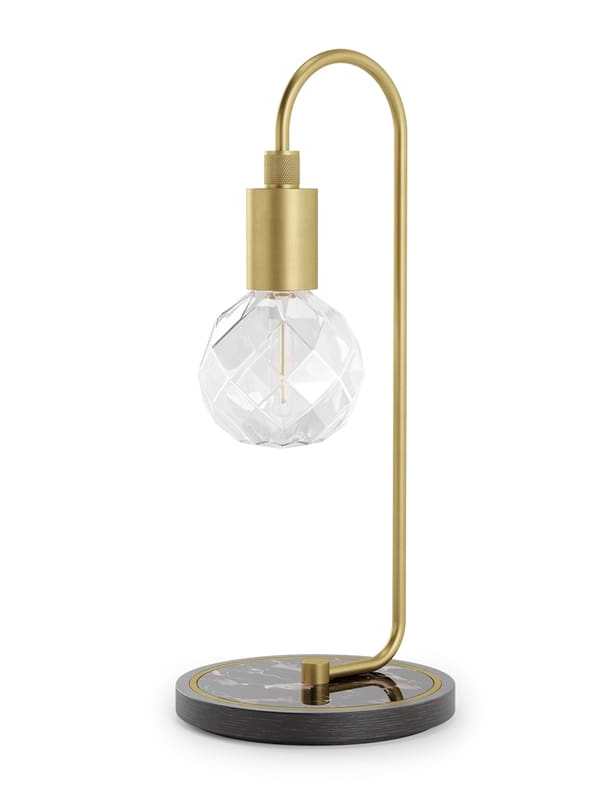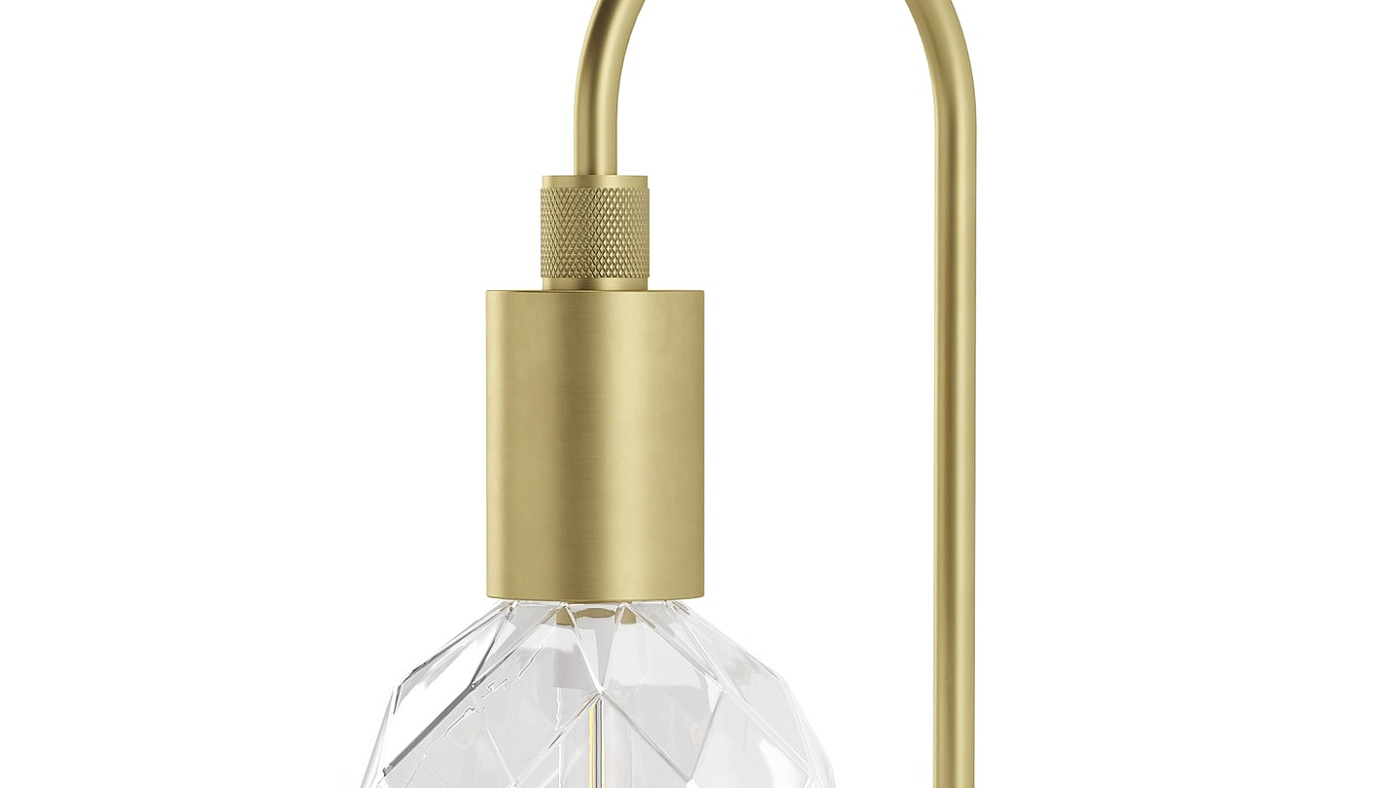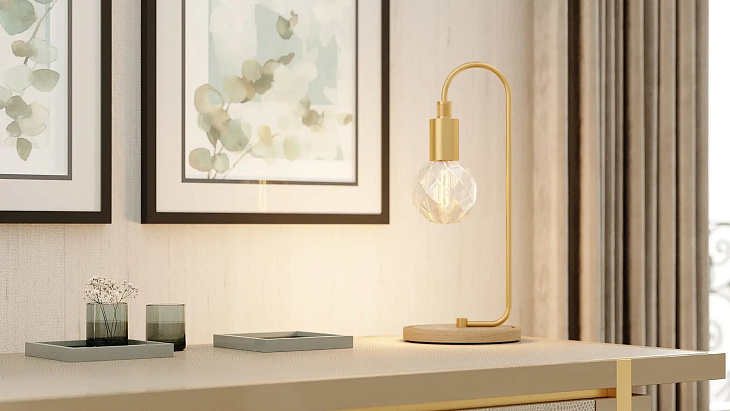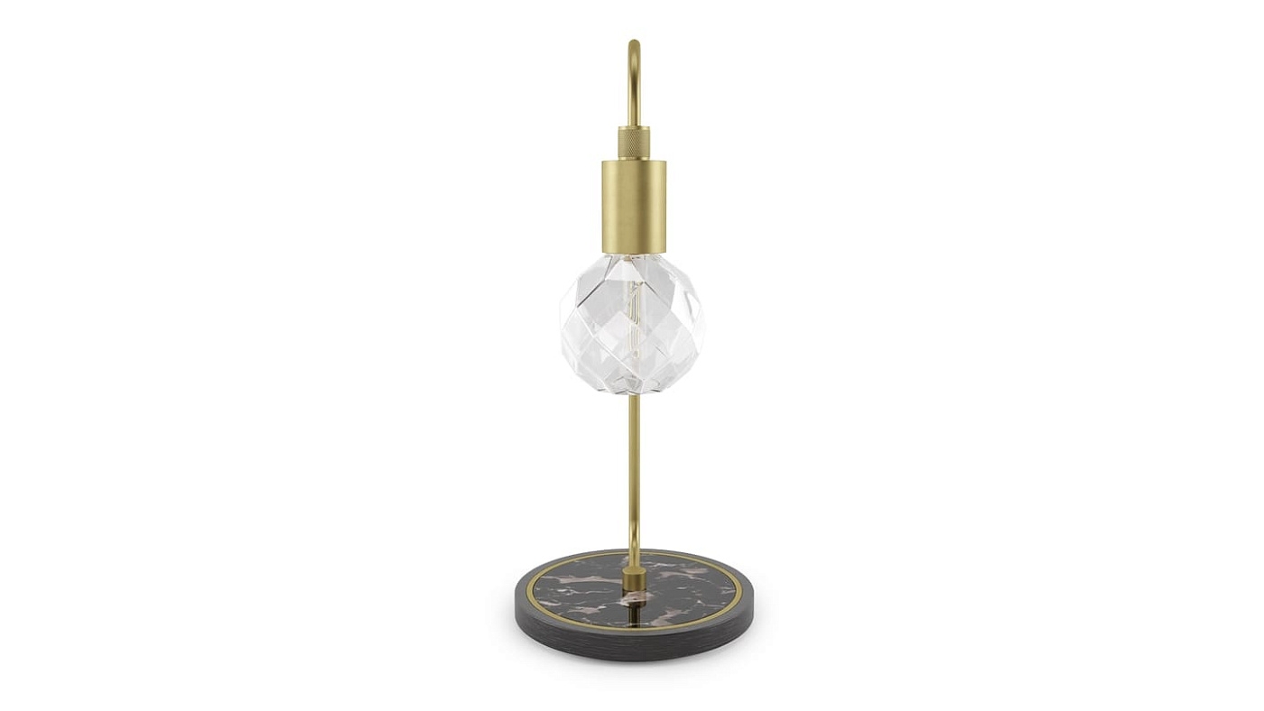 Настольная лампа на козлах сочетает в себе очарование ар-деко с силуэтом в индустриальном стиле, благодаря колбе из граненого стекла.