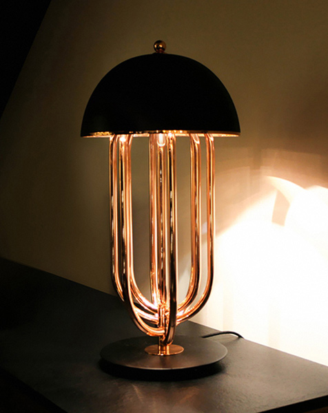 Настольный светильник Turner от португальского бренда Delightfull отличается оригинальным дизайном, в основе которого лежит причудливое сочетание стилей арт-деко и ретро. Вдохновением для создания этой настольной лампы стали танцевальные движения Тины Тернер (Tina Turner) – именно этим обстоятельством обусловлено желание мастеров компании Delightfull создать динамичный и непредсказуемый образ. Медный арки, составляющие основу конструкции лампы Turner, способны вращаться внутри друг друга и каждый раз формировать новый силуэт лампы. Плафон светильника изготовлен из алюминия и покрыт глянцевой краской. Настольная лампа Turner, как и другие светильники Delightfull, собирается вручную из материалов и комплектующих самого высокого качества и доступна в разных цветах и вариантах отделки.