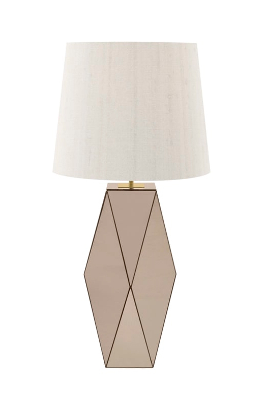 Завораживающая VALENCA придает очарование настольным лампам. Многогранное основание, изготовленное из секций бронзового зеркала, будет отражать доли света днем и ночью, в то время как двойной шелковый абажур обеспечивает классическую отделку.