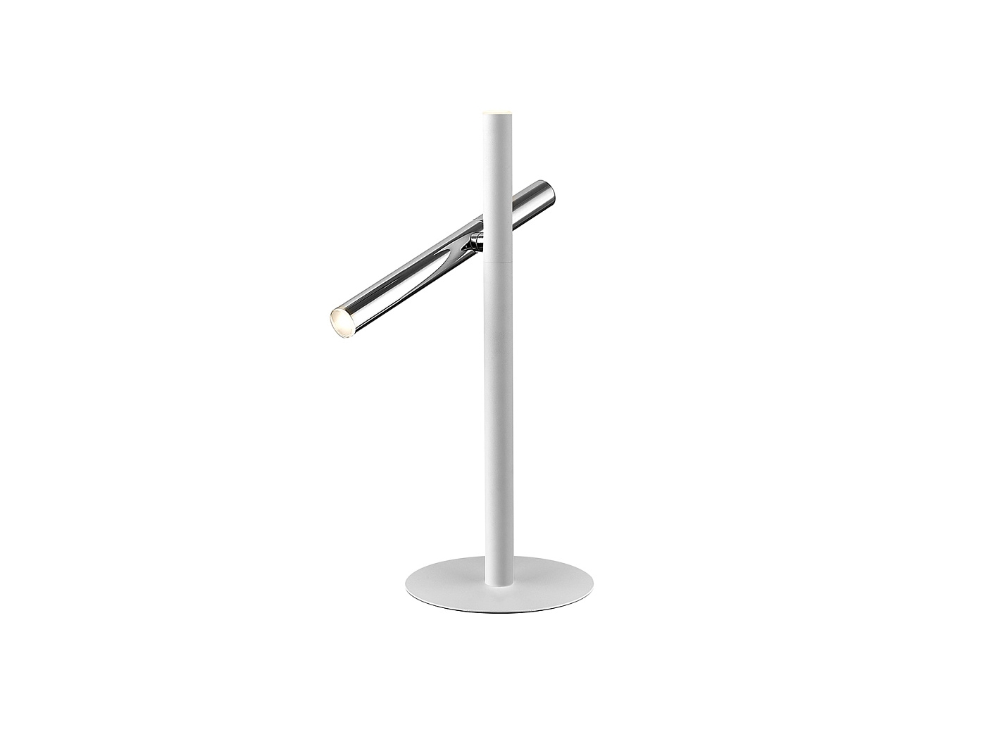 Настольная лампа с 2 лампами LED, из металла с покрытием "хром" и матовым белым покрытием, опаловый акриловый рассеиватель, 10W LED, 900 Lm, 3000 K.