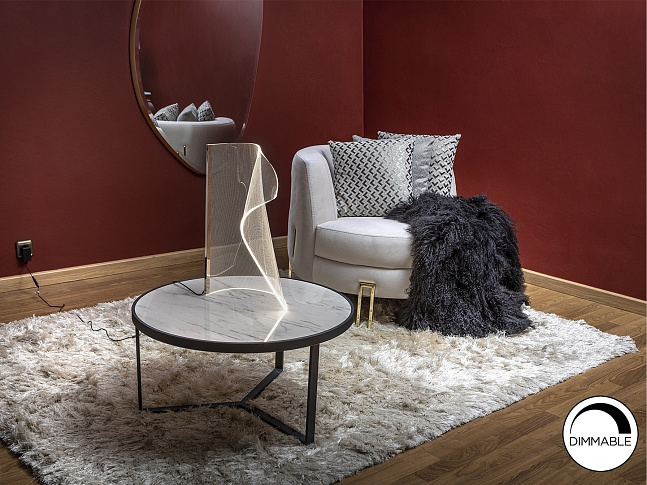 Настольная лампа из формованного микропечатного метакрилата и металлического профиля с розово-золотой отделкой. Светодиодное освещение 12 Вт 600 лм 3.000K. РЕГУЛИРУЕМАЯ ЯРКОСТЬ.