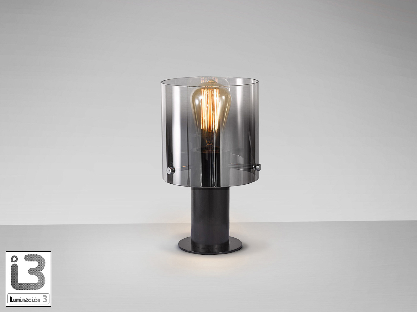 Настольная лампа из металла, покрытого матовым чёрным лаком. Абажур из дымчатого стекла. Цоколь E27.