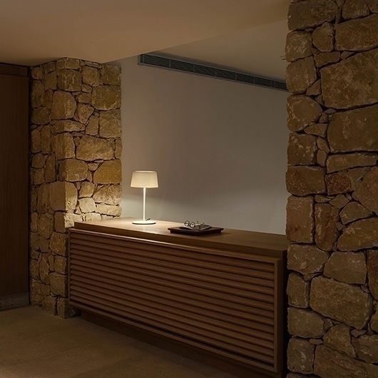 Warm — это настольная лампа с алюминиевым экраном, теплая и элегантная, которая может адаптироваться к любой обстановке. Дизайн Ramos & Bassols. Светодиодный источник света.