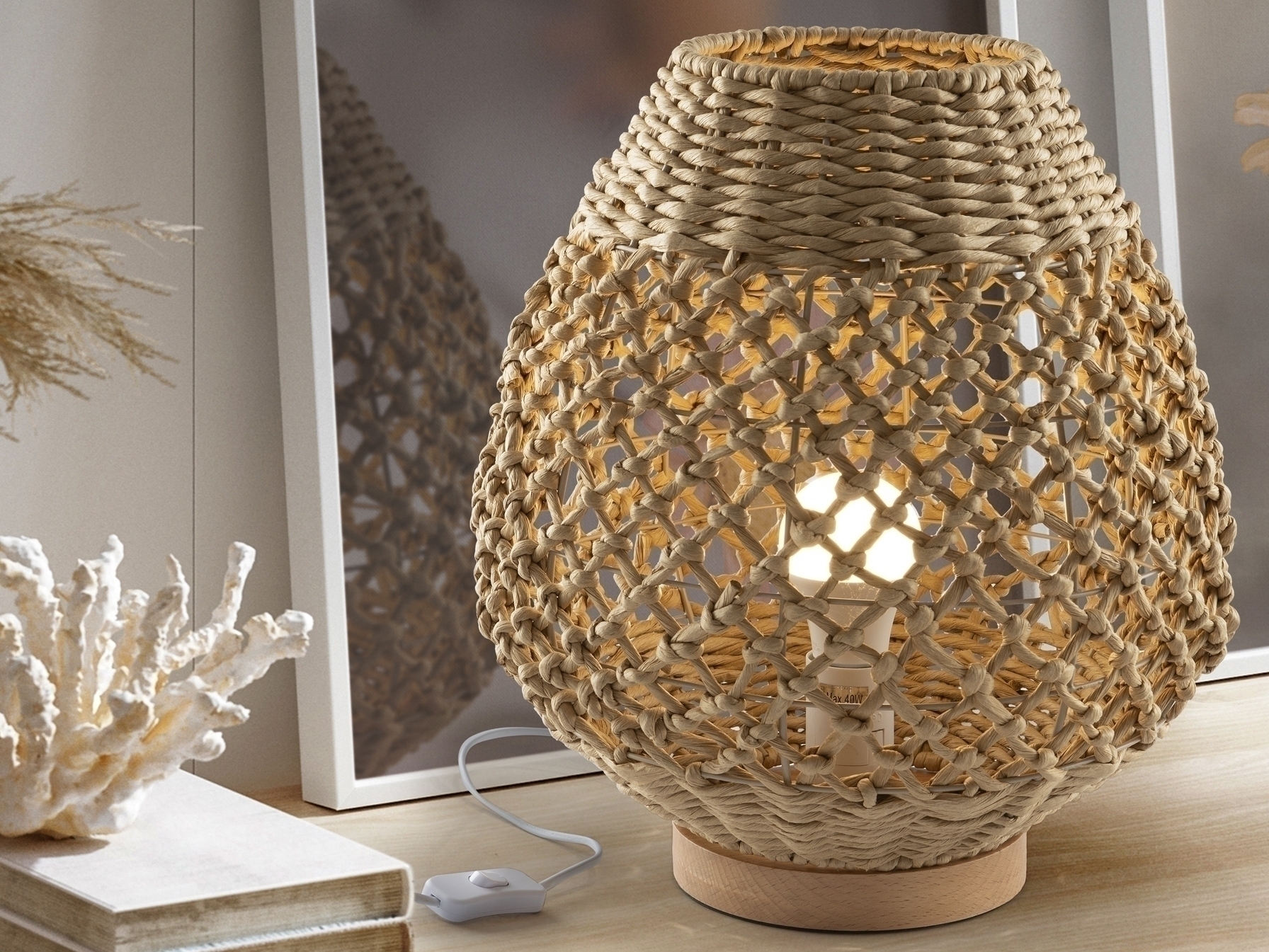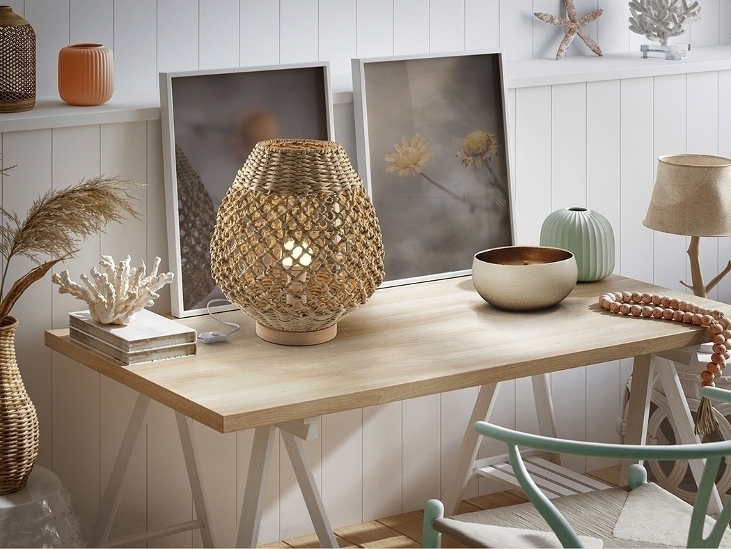 Настольная лампа YAIZA с абажуром из бумажной веревки