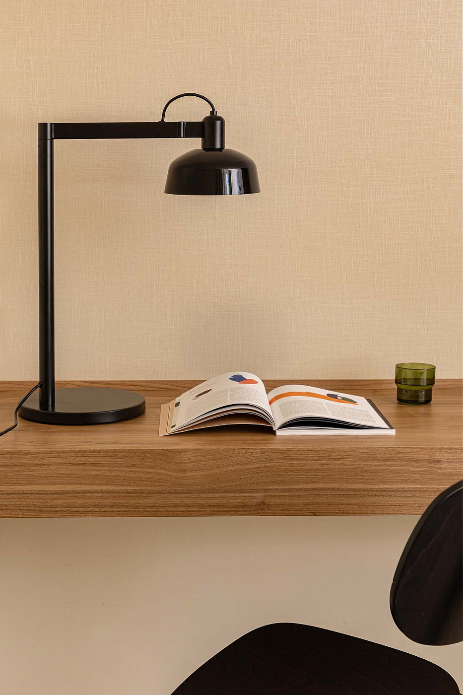 TATAWIN — это серия светильников, разработанная Адольфо Абейоном. Форма абажура напоминает верхнюю часть характерных домов Татауина, города, расположенного на юго-востоке Туниса. Этот настольный светильник с черной конструкцией состоит из абажура из черного металла, который обеспечивает направленный свет.