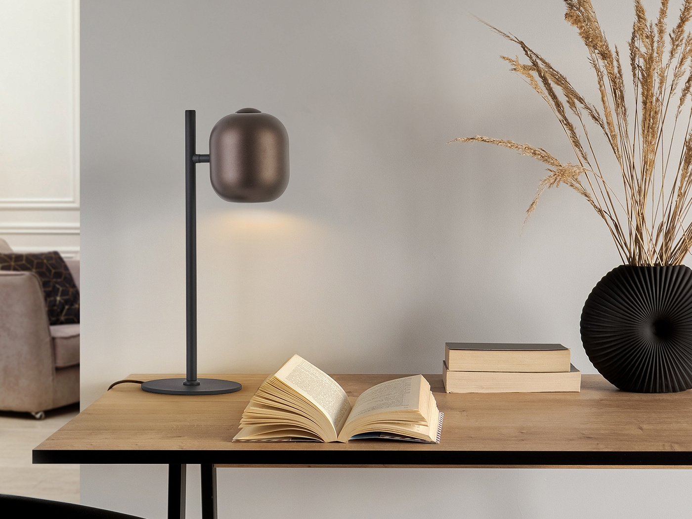 Nimes Настольная лампа 1L черно-коричневая