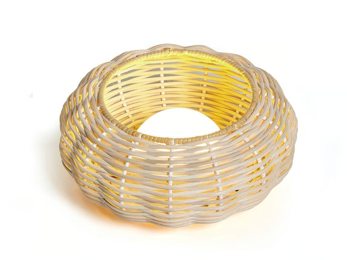 NIUET — это попытка воссоздать сложные конструкции птичьих гнёзд, которые являются прямыми потомками тех, что появились миллионы лет назад. Эта коллекция, изготовленная из лозы мастерами-ремесленниками из Жироны, соответствует всем требованиям к качеству. Яркий свет, исходящий из центра, — это метафора непрерывного жизненного цикла, который необходимо сохранять.
