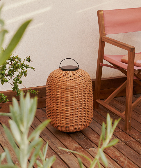 Saranella Большая переносная настольная лампа из коричневого искусственного ротанга