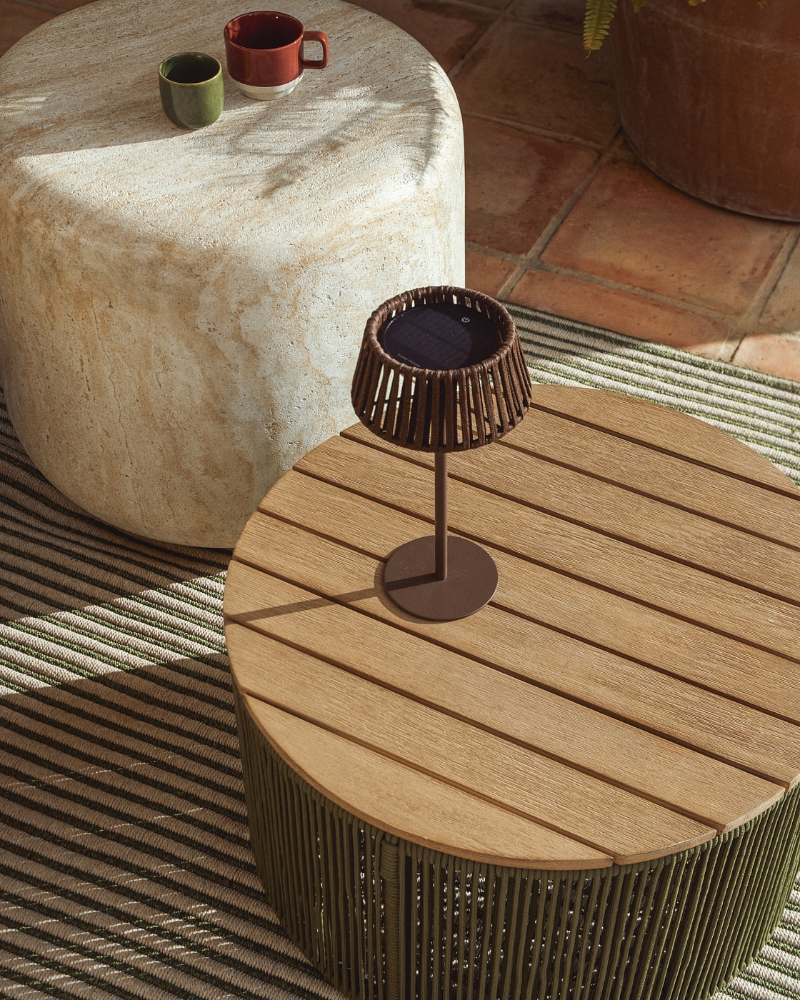 Уличная настольная лампа Aldet на солнечных батареях коричневая