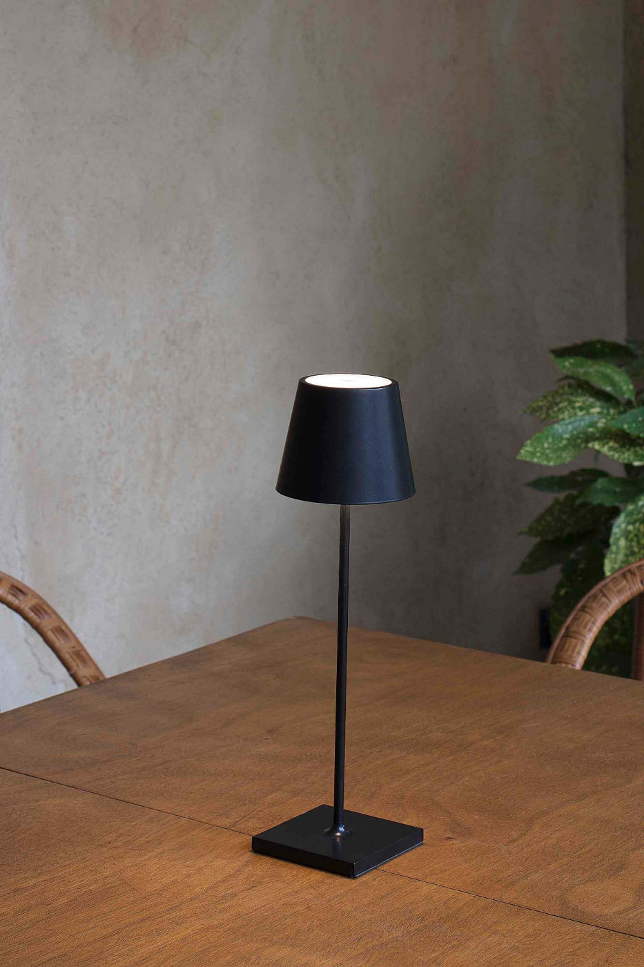 TOC - черная переносная настольная лампа для освещения садов и террас. Классический, но отремонтированный стиль. Эта оригинальная переносная лампа легко зажигается благодаря сенсорной системе .