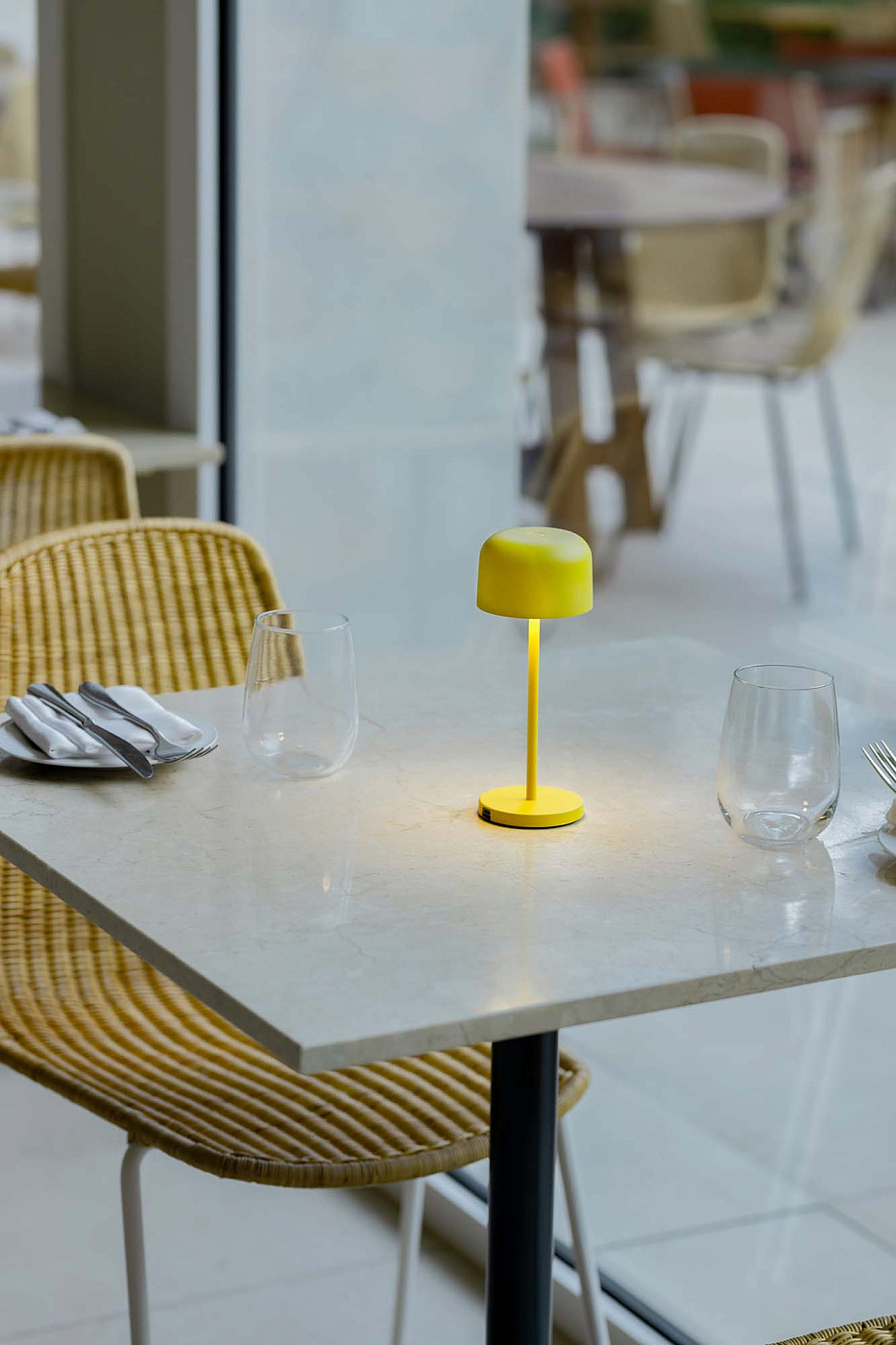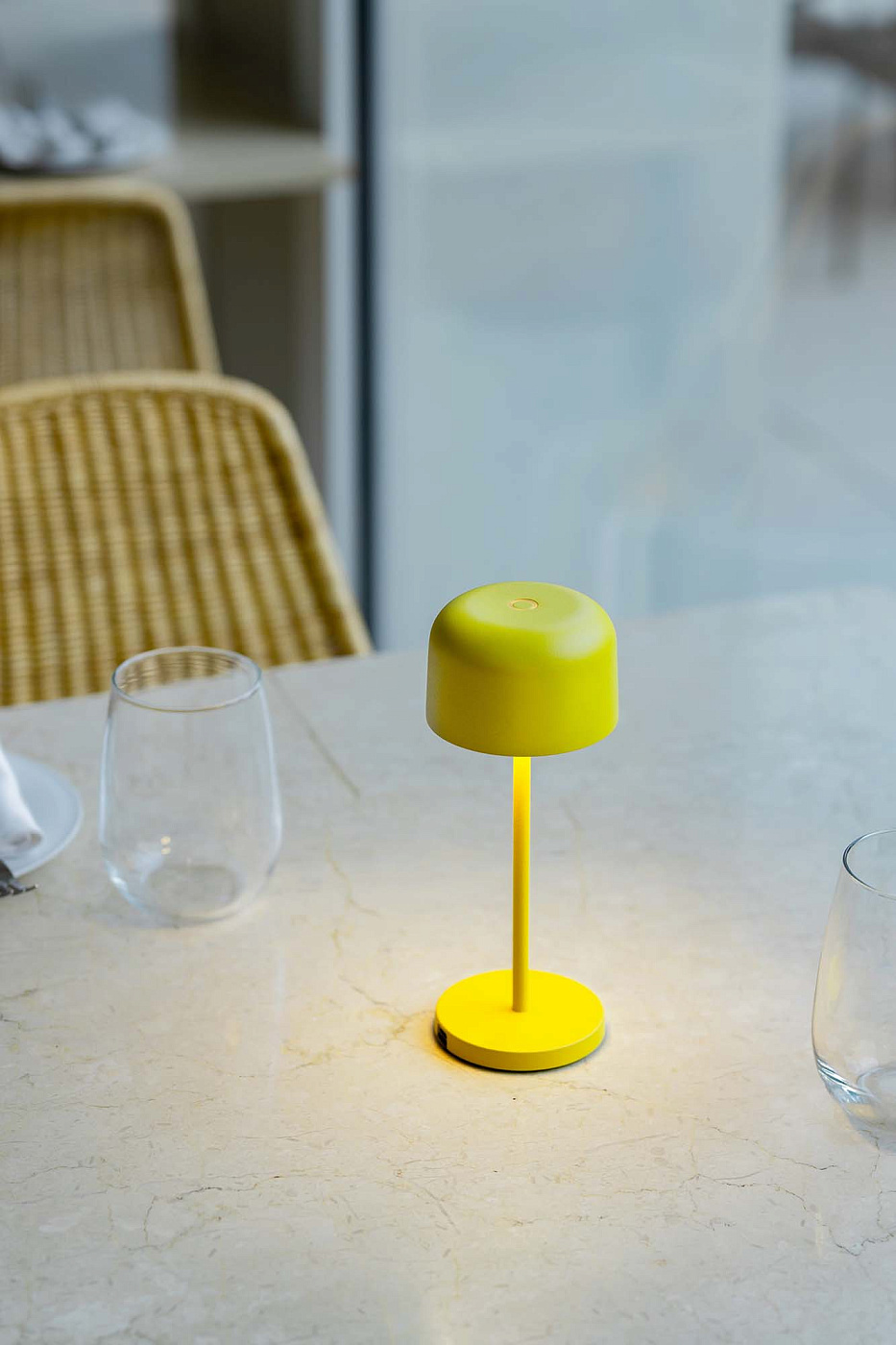 Минималистичная и декоративная коллекция MAVIS 200 идеально подходит для размещения на открытых площадках, например, в ресторанах или на частных террасах. Эта желтая лампа управляется небольшим сенсорным выключателем, который также позволяет регулировать интенсивность света в соответствии с вашими потребностями. Она оснащена USB-портом Type-C мощностью 5 Вт и имеет степень защиты IP54 для максимальной защиты от воды и пыли.
