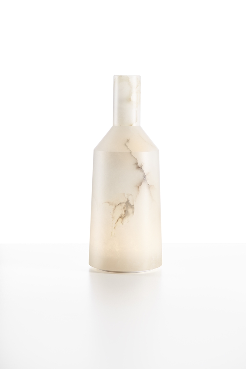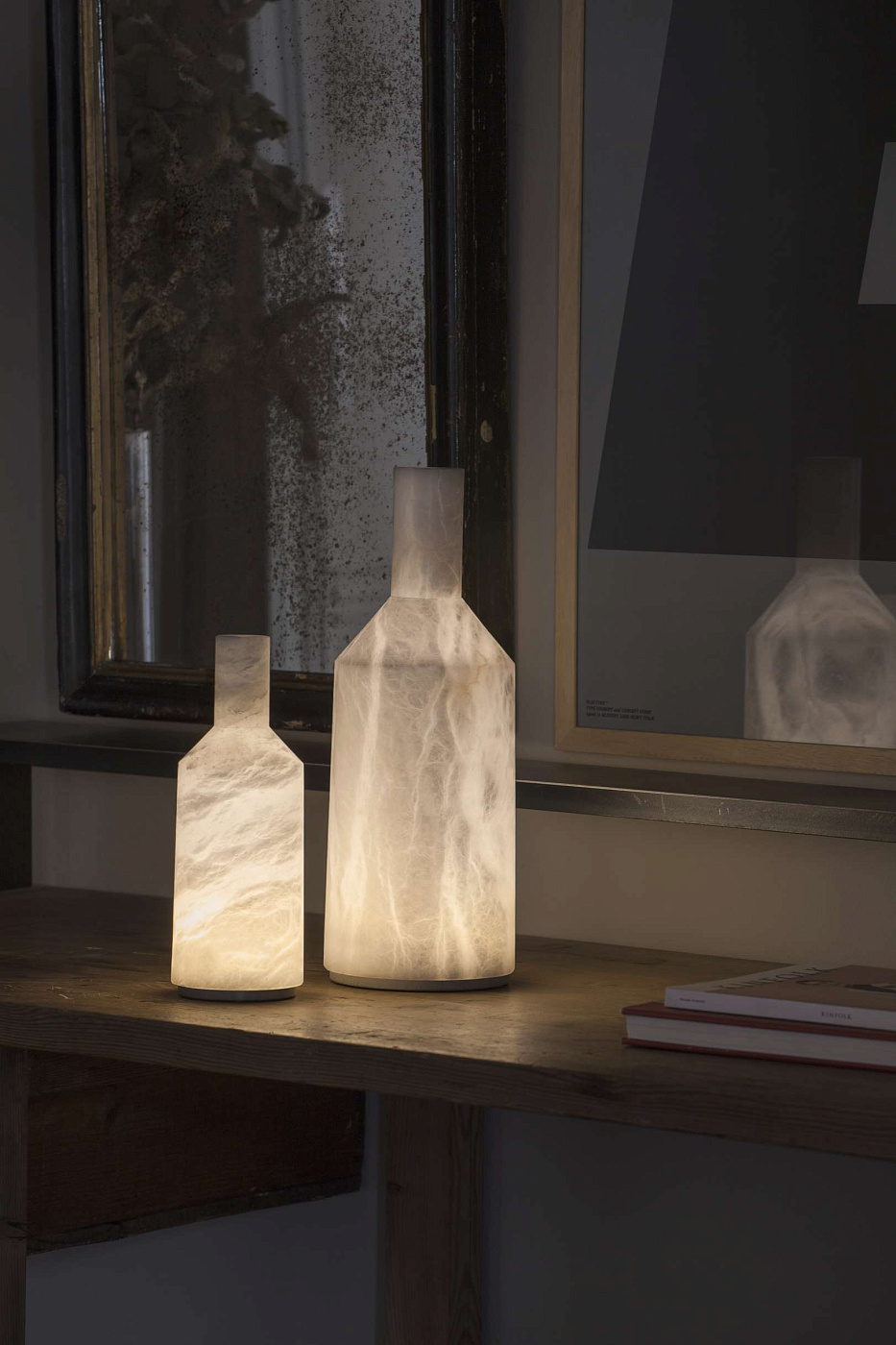 Эта настольная лампа изготовлена из алебастра, материала с высоким коэффициентом преломления света. Алебастр выпускается в трех размерах для создания различной атмосферы. Удлиненная горловина, легко адаптируемая и практичная для различных целей, облегчает транспортировку. Он создан из каменной глыбы, которая при полировке меняет свой внешний вид и превращается в совершенно другой материал, на этот раз полупрозрачный. Чистые, благородные материалы, практически без каких-либо промышленных манипуляций, делают каждое изделие уникальным. В результате получилась минималистичная форма, которая в сочетании с мощью светодиодной технологии придает материалу непревзойденную, почти "лунную" прозрачность. Выпускается в трех размерах: h 11 см, h 30 см, 39 см.