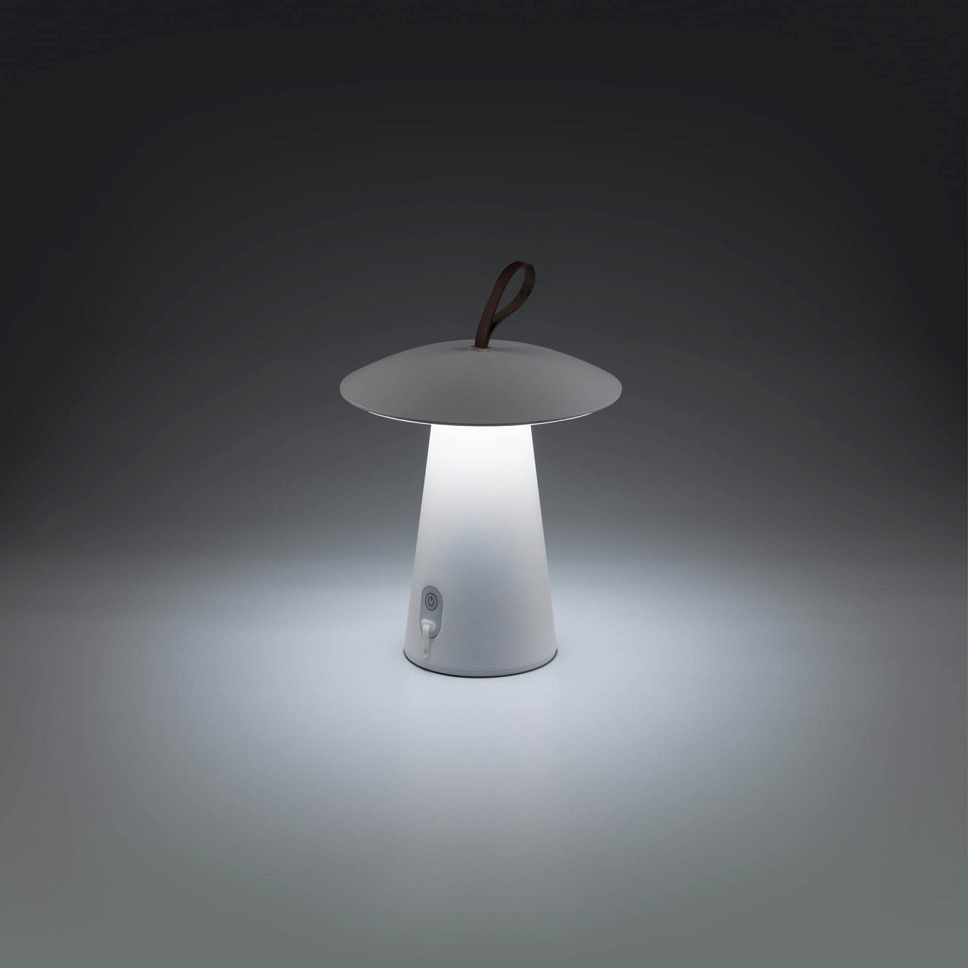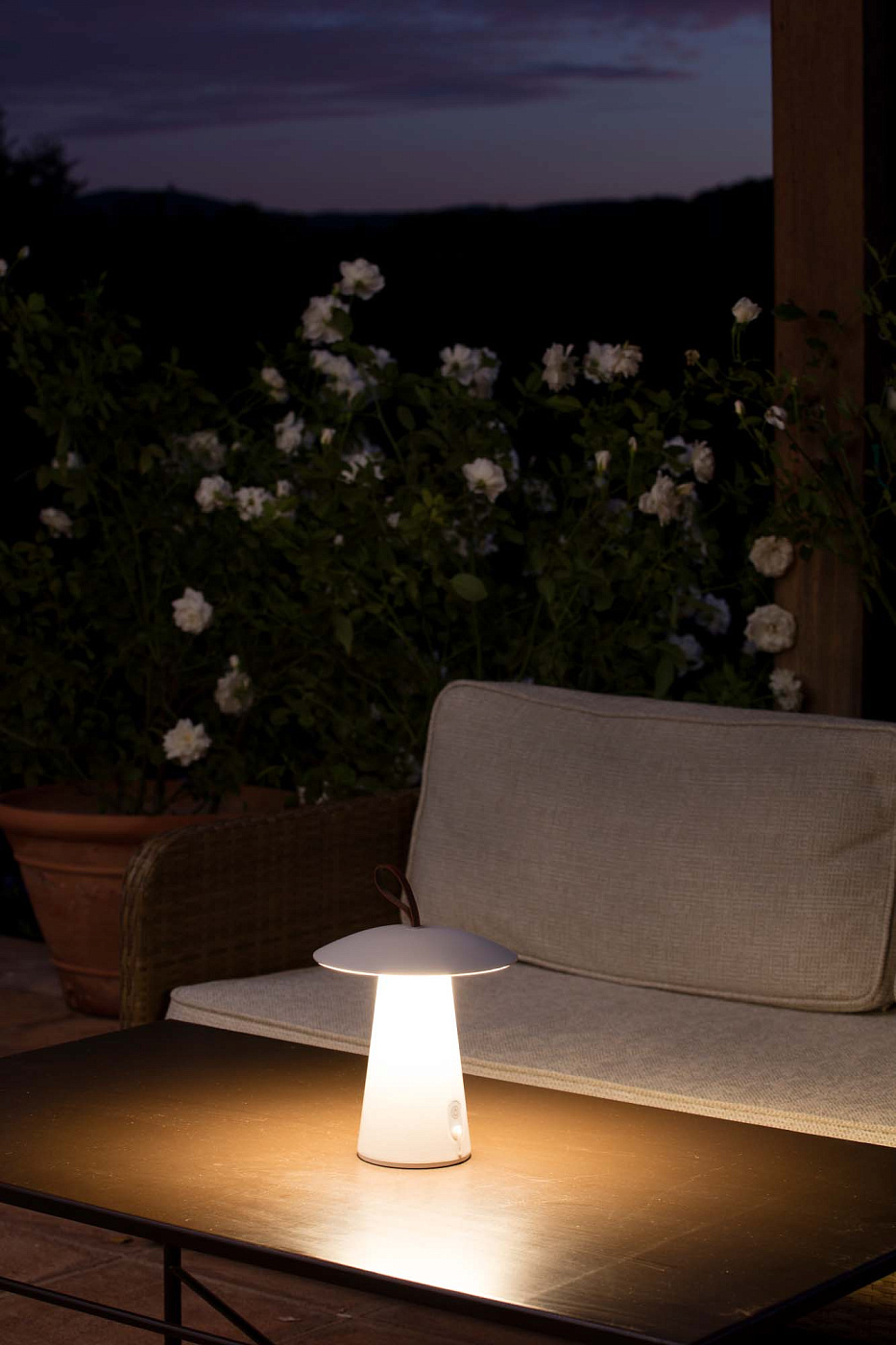 TASK - это переносной уличный фонарь со светодиодной технологией. У этого есть забавный дизайн, который напоминает о грибе и имеет кожаную ручку, чтобы облегчить его транспортировку. Свет, который проецируется косвенно, теплый и может регулироваться в трех интенсивностях . Поскольку он портативный, он перезаряжается с помощью кабеля мини-USB (входит в комплект), и его автономность зависит от потребления: -100% интенсивности 6 часов автономии. -40% интенсивность 15 часов автономии. -10% интенсивность 80 часов автономии. Время полной зарядки составляет 4-5 часов, и для того, чтобы положить его на улицу, важно закрыть USB-крышку защитным устройством.