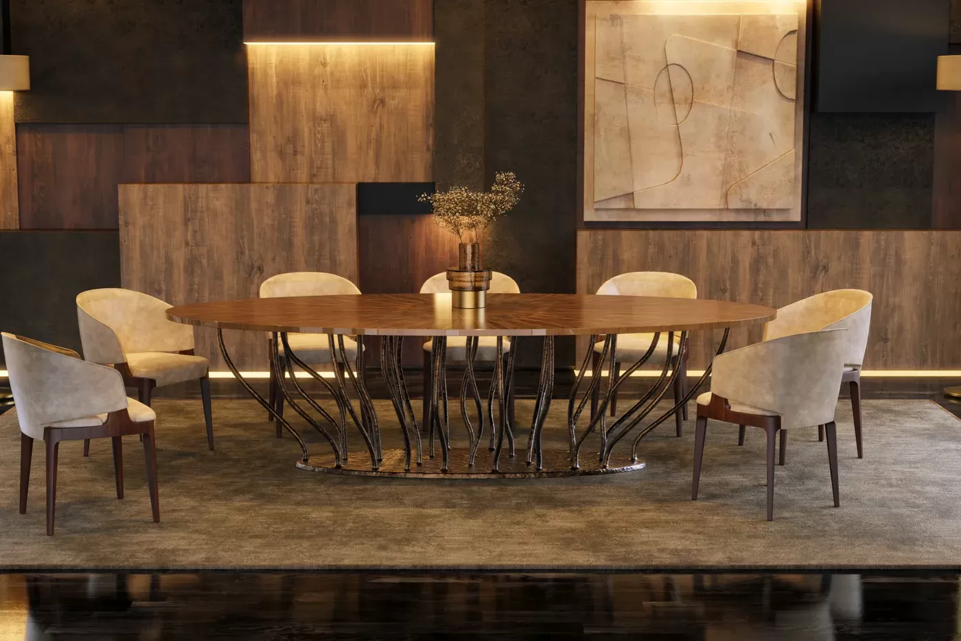 С его завораживающим основанием, напоминающим изящно переплетенные ветви деревьев или корни, и тщательно обработанной столешницей из ореха цвета солнечных лучей, этот стол является настоящим символом изысканной роскоши. Изготовленный вручную с тщательным вниманием к деталям, обеденный стол Allana демонстрирует приверженность Karpa к созданию исключительных и неподвластных времени предметов мебели. Этот стол отличает не только его безупречное мастерство, но и его способность полностью настраиваться в соответствии с вашими точными требованиями. От выбора идеальной отделки до подгонки размеров, каждая деталь может быть персонализирована, чтобы создать единственный в своем роде предмет, отражающий ваш уникальный стиль и взыскательный вкус.