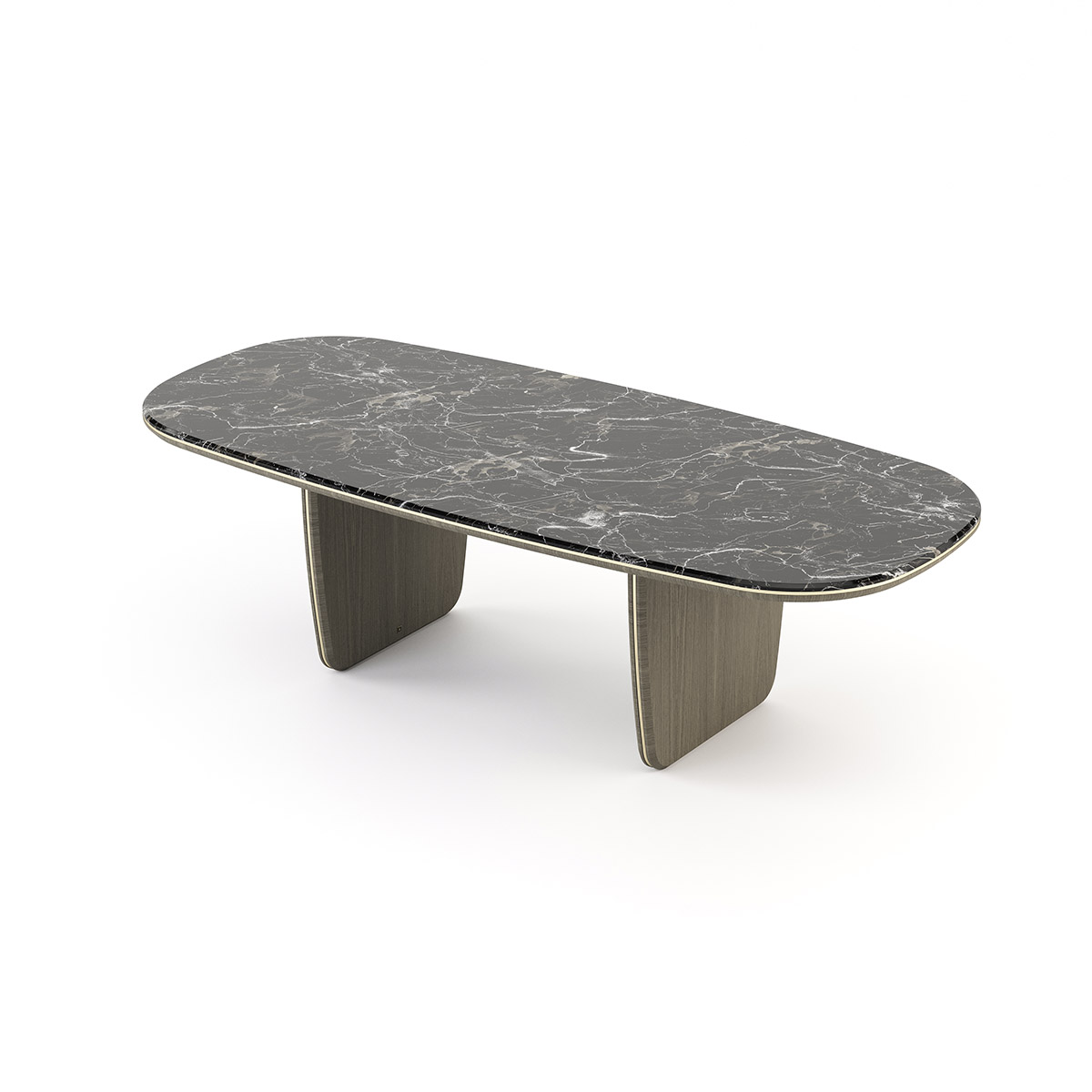 Jeane-это современный обеденный стол середины века с деревянной конструкцией и потрясающей мраморной столешницей. Он также имеет золотистые металлические детали, что придает ему дополнительную изысканность.