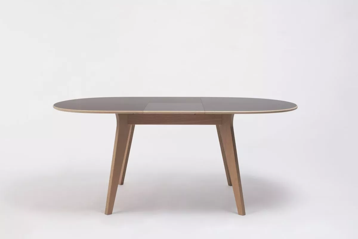 Раздвижной стол Oakland из МДФ с дубовым шпоном и ножками из массива каучука Ø120(200)x90 см