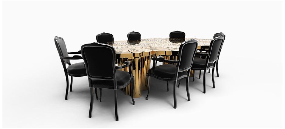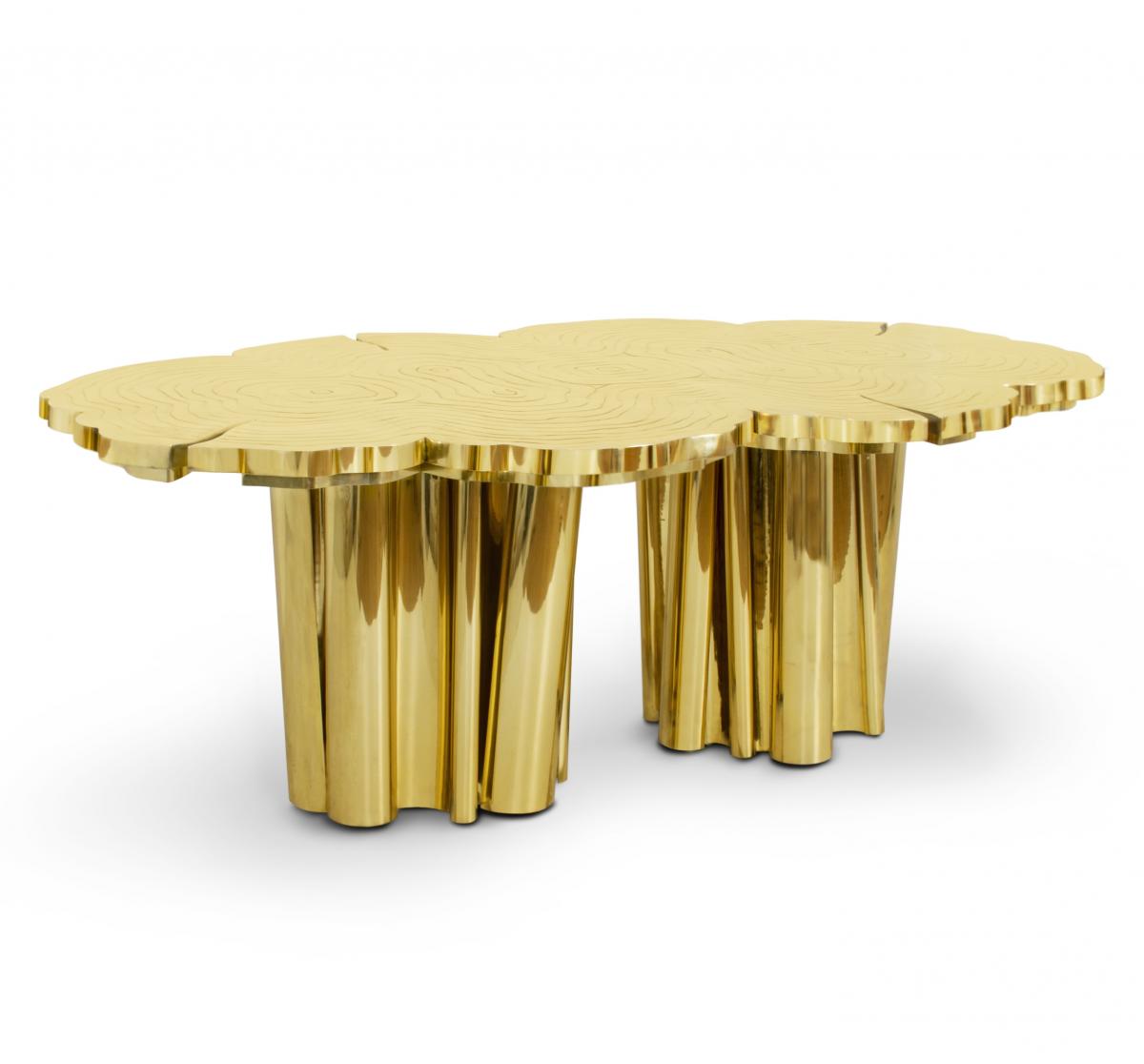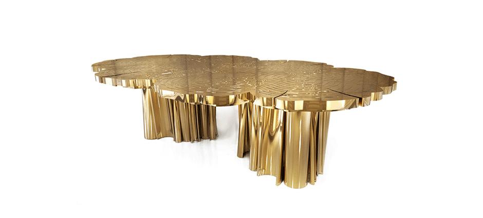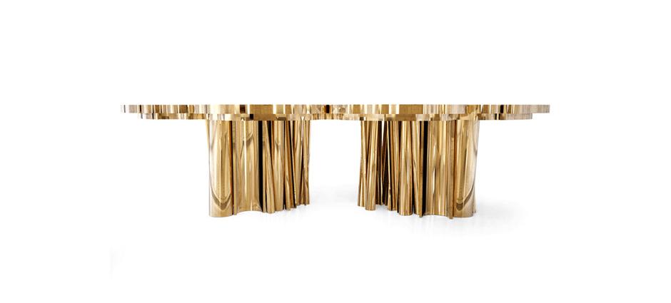 Fortuna – это новое блистательное творение от португальского бренда Boca do Lobo. Этот обеденный стол является олицетворением удачи и богатства, символизирует полный контроль над жизнью и судьбой. Трубы различного диаметра из полированной меди поддерживают деревянную столешницу, изготовленную в виде разреза ствола многовекового дерева. Столешница доступна в нескольких вариантах отделки: золотистая, серебристая, глянцевая, матовая и деревянная.
