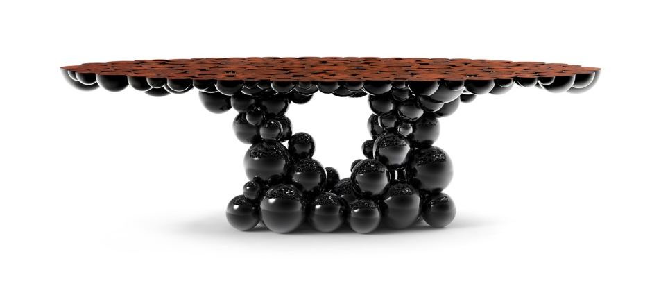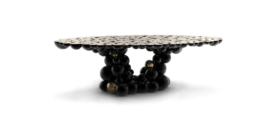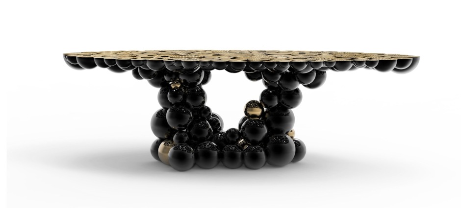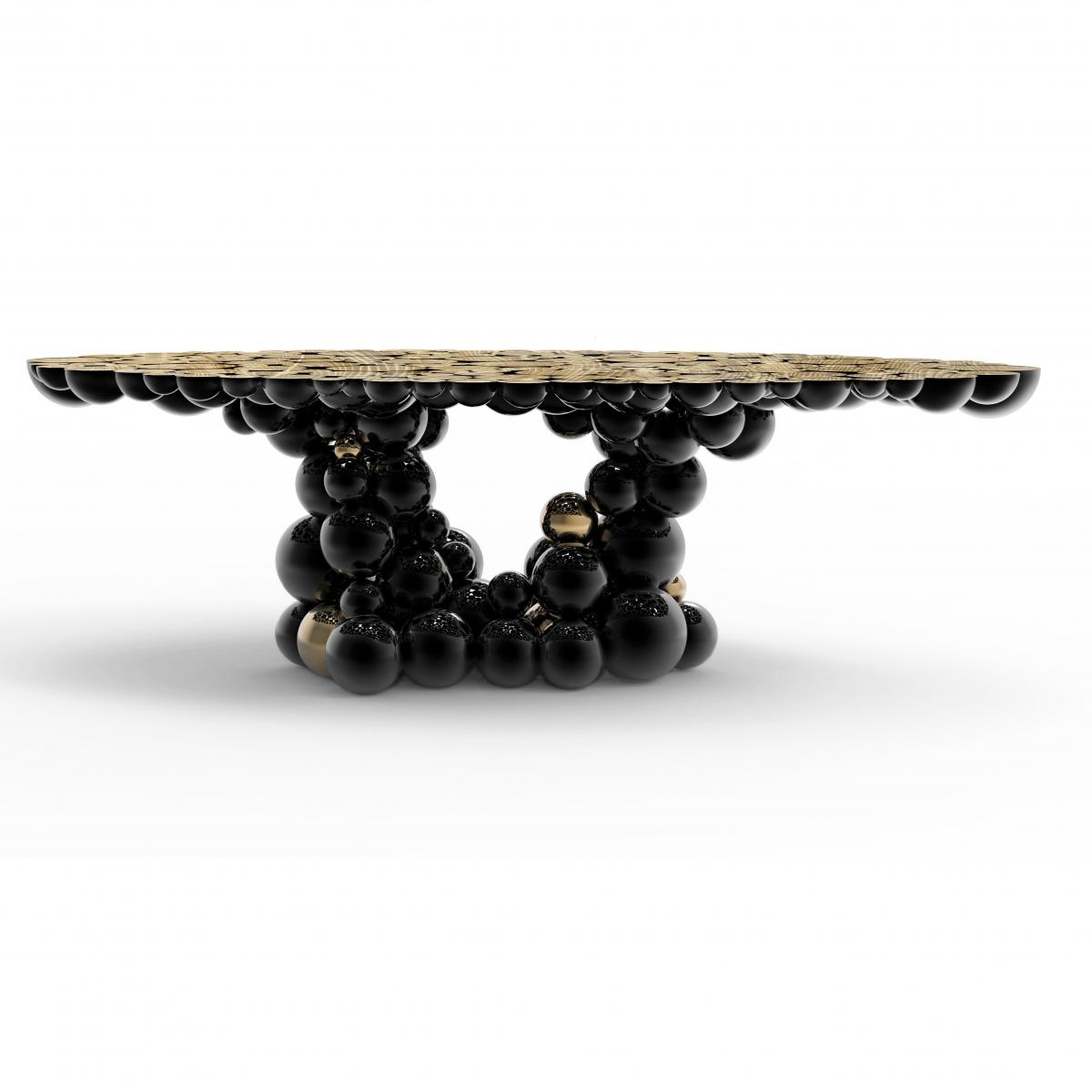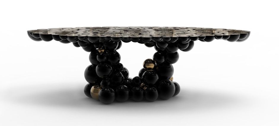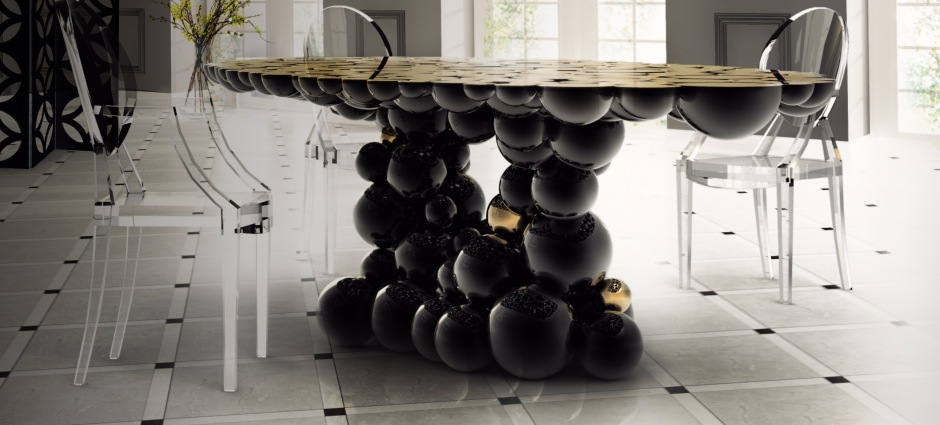 Обеденный стол Newton состоит из множества алюминиевых сфер и полусфер, покрытых черным глянцевым лаком. Отдельные элементы стола имеют золотое напыление. Вдохновением для его создания стали открытия, сделанные Исааком Ньютоном в области физики. Еще никогда закон всемирного тяготения не имел столь осязаемых очертаний – при взгляде на стол Newton у вас непременно создастся впечатление, будто сферы и полусферы соединены друг с другом лишь силой притяжения. Этот стол рассчитан на 8-10 человек, которые обязательно оценят новый интерьер Вашего дома.