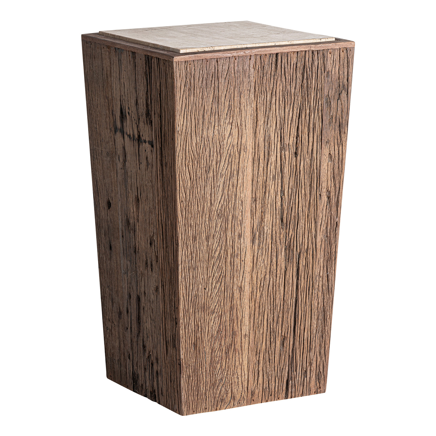 Подставка Merkem в деревенском стиле, изготовленная из переработанной древесины коричневого цвета с эффектом состаривания, в сочетании с бежевым травертином с матовой отделкой. Ширина: 40 см, Глубина: 40 см, Высота: 71 см