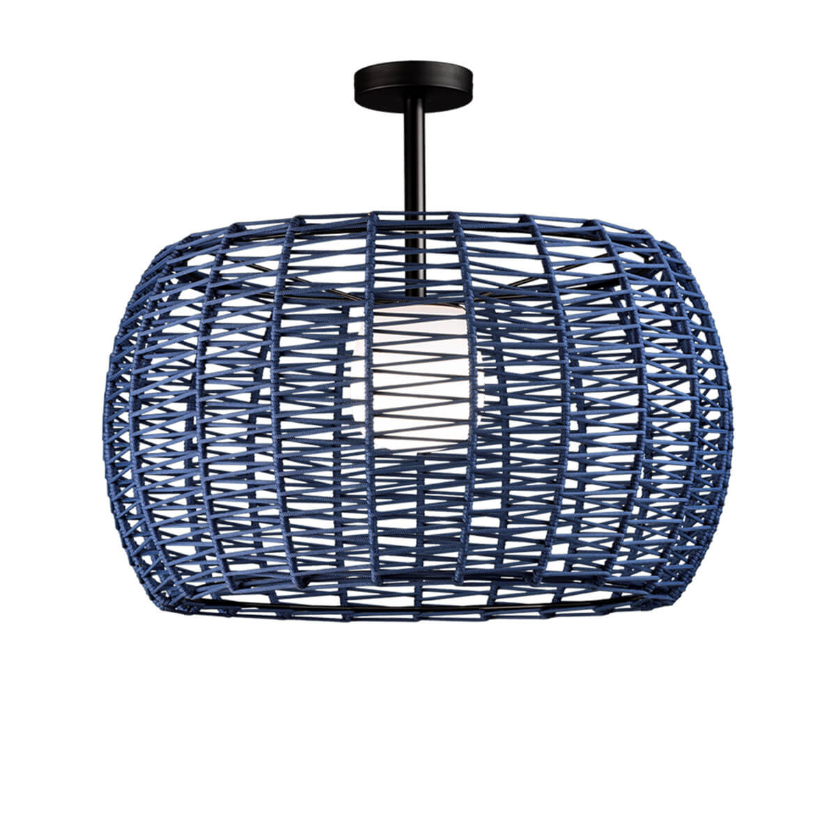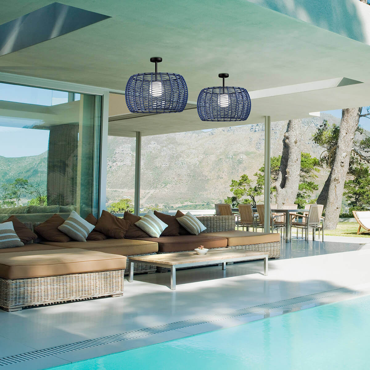 Потолочный светильник с абажуром Ø75 см из плетеного вручную шнура из переработанных пластиковых бутылок в оригинальной зигзагообразной технике. IP66 для использования на открытом воздухе.