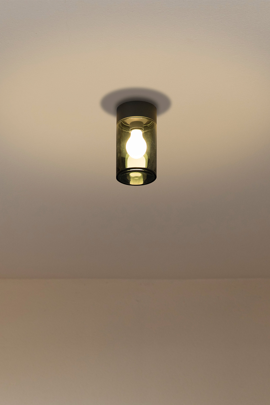 KILA — это коллекция наружного освещения из алюминия и стекла. Его дизайн идеально отделяет серую структуру полупрозрачного рассеивателя, позволяет видеть лампочку. Этот темно-серый потолочный светильник идеально подходит для входов, веранд и террас.