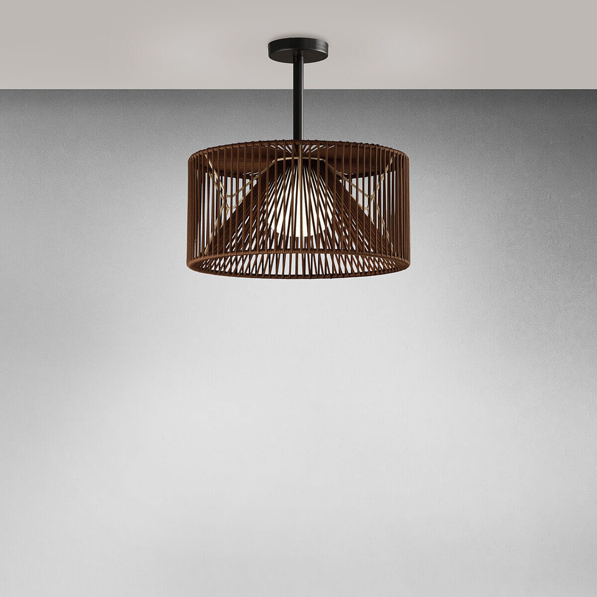 Потолочный светильник с абажуром диаметром 50 см из плетеного вручную шнура из переработанных пластиковых бутылок . IP66 для использования на открытом воздухе. - Лампы НЕ включены (1 x светодиод E27). - Метры шнура: 75 метров.