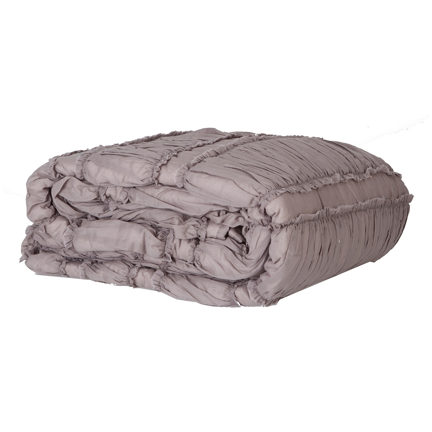 Плед Kinsley серого цвета в провансальском стиле. Изготовлен из хлопка в сочетании с полиэстером. 80% хлопок, 20% полиэстер.