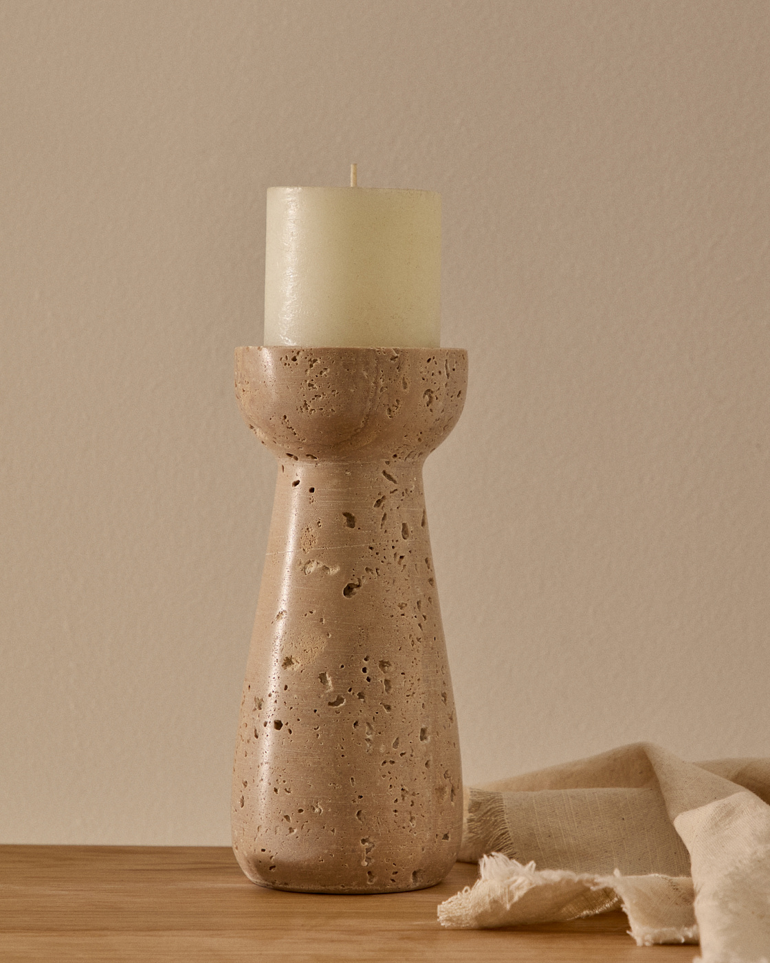 Маленький подсвечник из бежевого травертина Magan