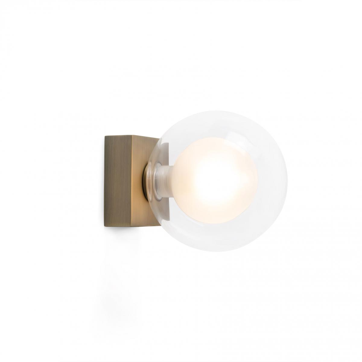 Настенный светильник для ванной, разработанный Alex & Manel Lluscà. PERLA - это светильник круглой формы с прозрачным внешним диффузором, напоминающим пузырь. Этот бра с отделкой под бронзу идеально подходит для освещения зеркала.