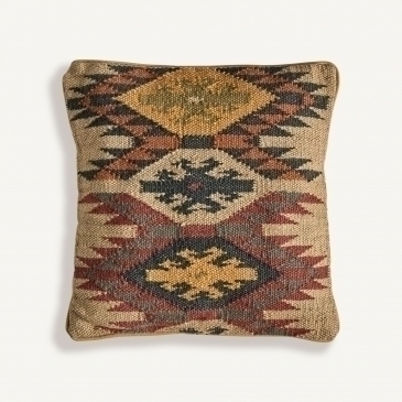 Квадратная подушка Keith коричневого цвета в винтажном стиле. Изготовлен из джута. Съемное изделие.