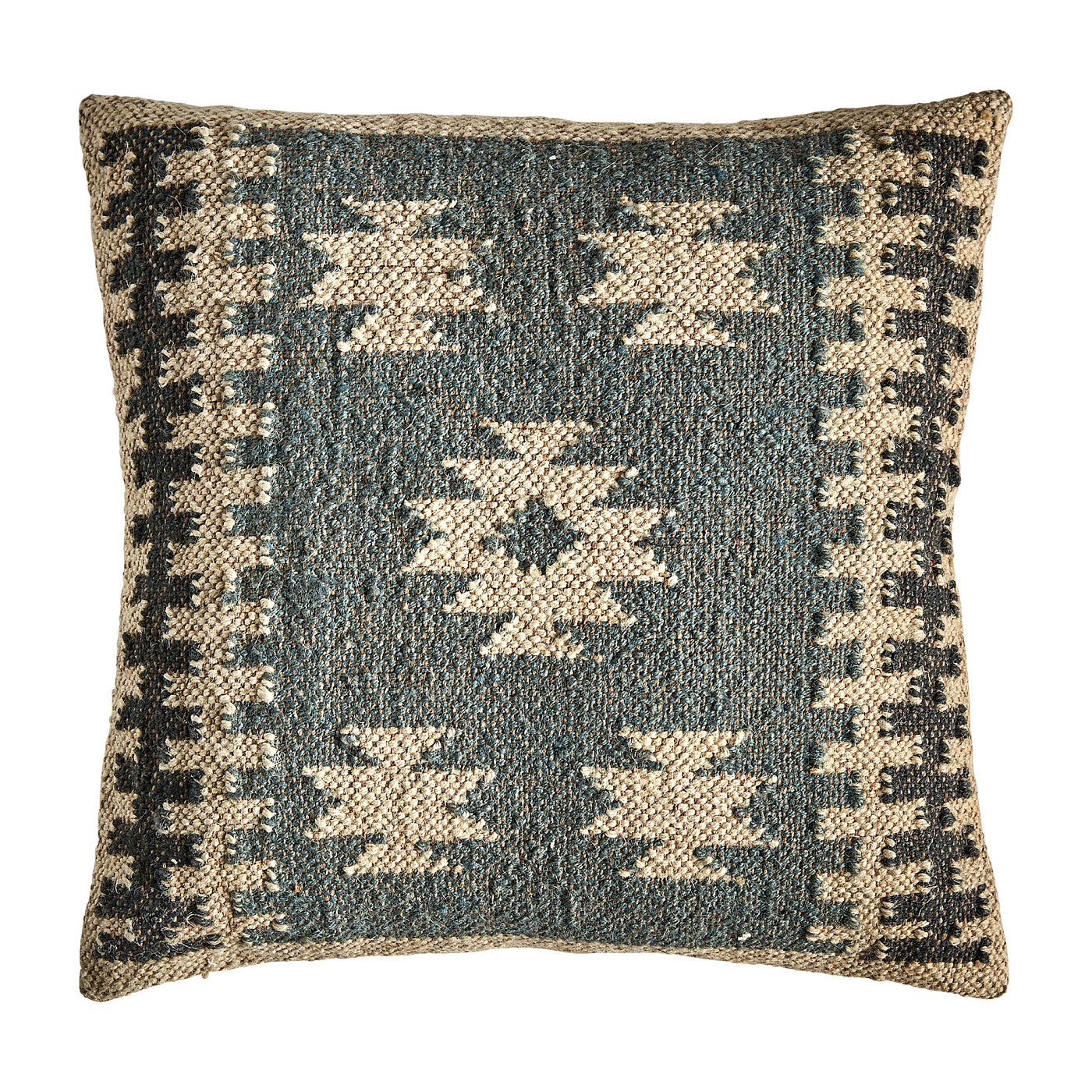 Квадратная подушка Keith в оттенках синего киллима в винтажном стиле. Изготовлен из джута. Съемное изделие.